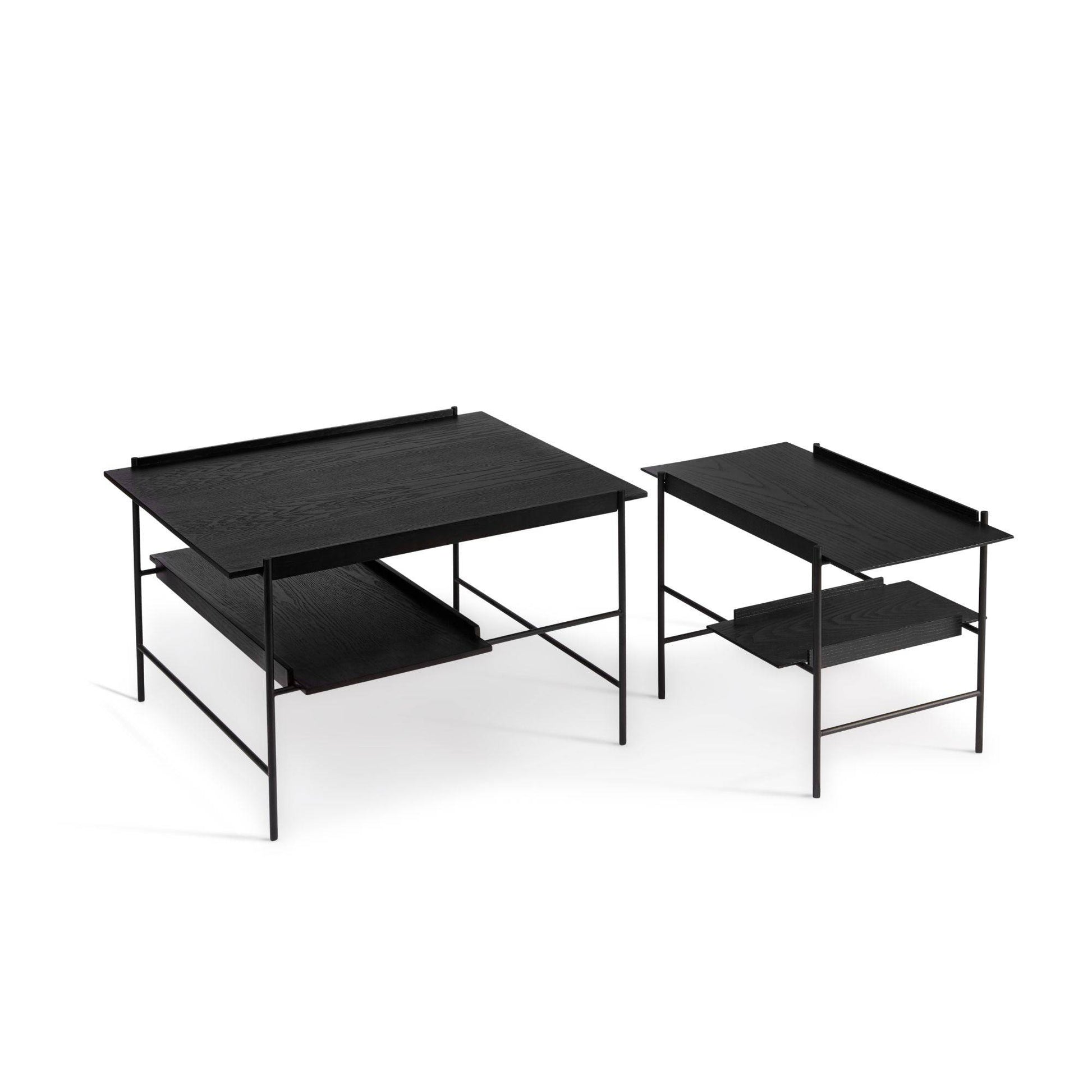 This multifunctional design is not just a practical side table. The stained Black ash wood table tops can be used on their own as trays.