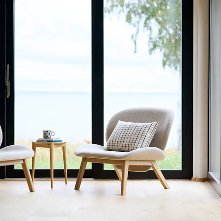 "Suru" is the Japanese word for "through," and the lounge chair named after it reflects designer Carina Maria’s vision of blending Japanese and Scandinavian aesthetics. The chair is crafted from two elegantly shaped shells with organic contours, with one shell designed to pass through the other. It is set on a wooden frame featuring prominent mortise joints, resulting in a refined and comfortable lounge chair, perfect for relaxation and reflection—without the weightiness of a traditional armchair. A striking, focal piece of furniture, it embodies a harmonious fusion of past and present in any home.