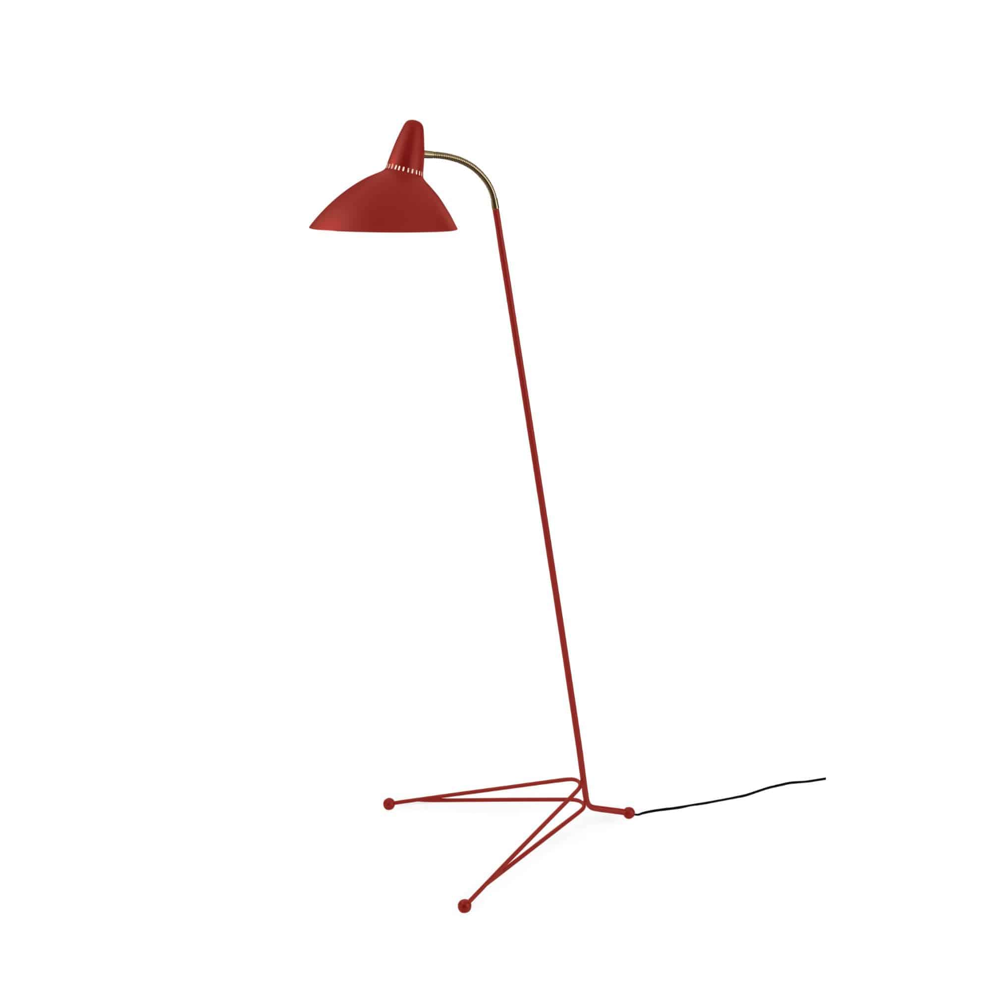 A floor lamp with an elegantly shaped, wide shade by the grand master of 1950s Danish lighting design, Svend Aage Holm-Sørensen. Lightsome is a sophisticated lamp perched gracefully on a slender three-legged base. The generous lighting provided by the large sculptural shade is perfect in the vicinity of a sofa or as a reading lamp next to an armchair. The iconic light holes in the floor lamps painted metal shade are an extra Sven Aage Holm-Sørensen designer touch. Its gentle idiom and discreet brass details make Lightsome a timeless floor lamp of the highest quality. Choose from several classic colours in Warm Nordics exclusive silky matt quality paint, which guarantees an extraordinarily beautiful and durable surface.
