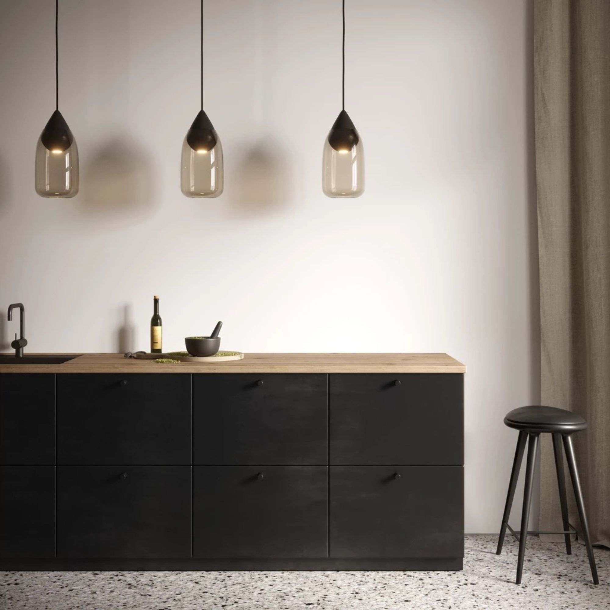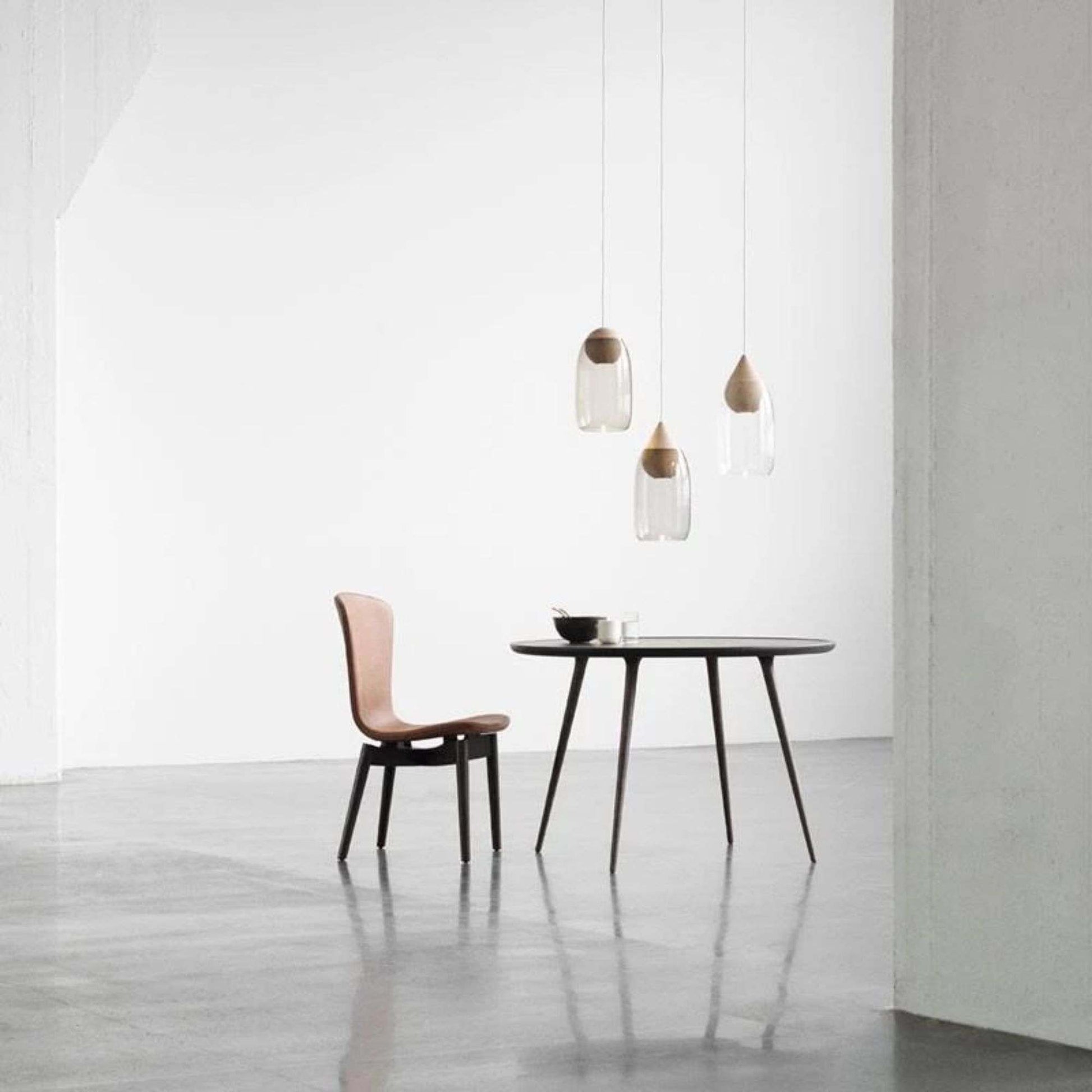 Liuku is a contemporary pendant lamp designed by Finnish designer Maija Puoskari. Liuku is consisting of a coloured mouth-blown glass shade nestling over an FSC-certified linden wood base in two different shapes, with long-life LED built-in. Liuku’s shade is available with clear glass or in two beautiful tones of smoke or gradient violet. Additionally, the wooden base can be used on its own as a single pendant, or to create rows and clusters for both residential and commercial environments.