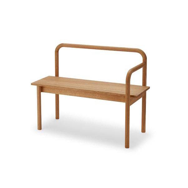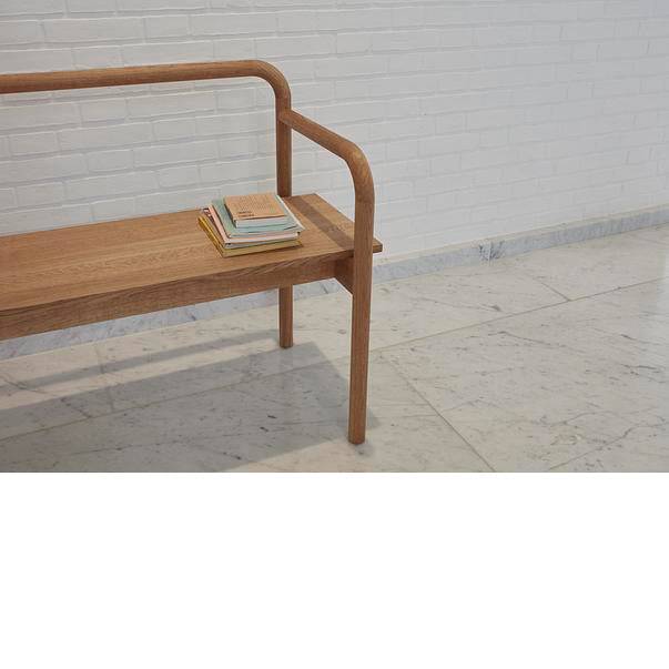 The bench is crafted from high-quality wood with clean, sculptural cuts.