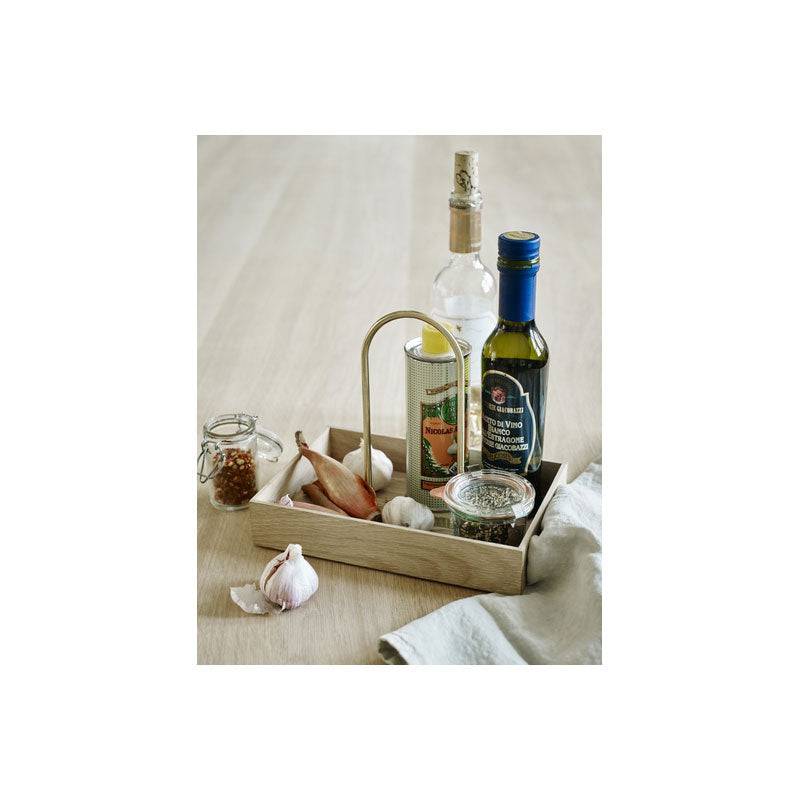The Norr Caddy from Skagerak by Fritz Hansen is a simple and practical container crafted in untreated or coloured oak. Designed for everyday dining, it keeps your vinegars, oils, herbs, and spices neatly gathered in one place. An elegantly arched handle positioned in the centre makes it easy to carry, allowing you to bring your favourite condiments straight from the kitchen to the dining table. Functional and refined, the Norr Caddy is a perfect example of how Scandinavian design elevates even the smallest details of daily life.