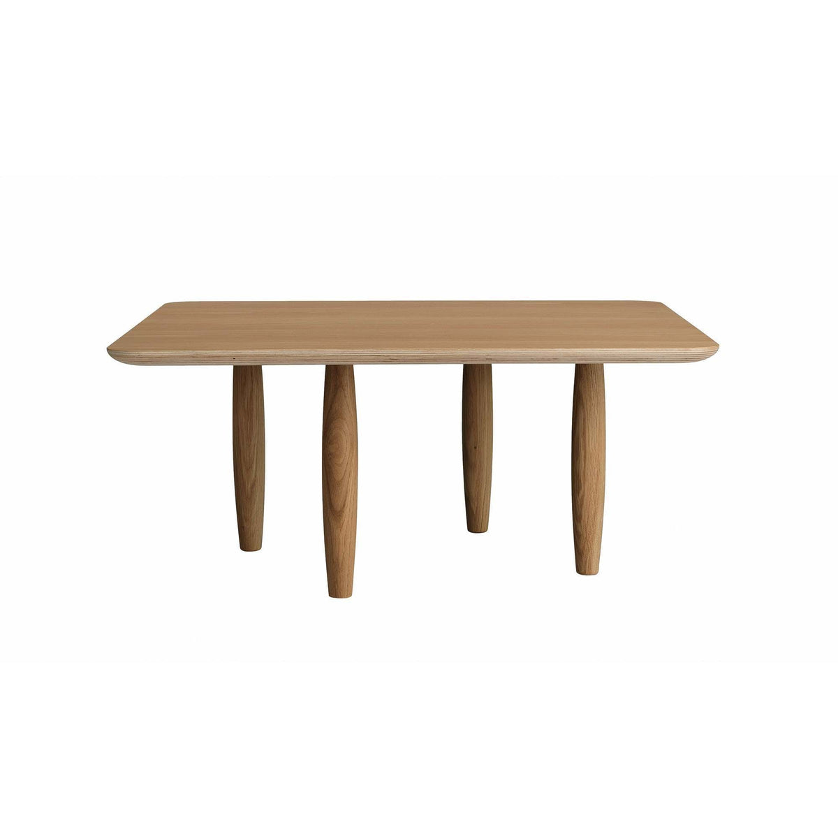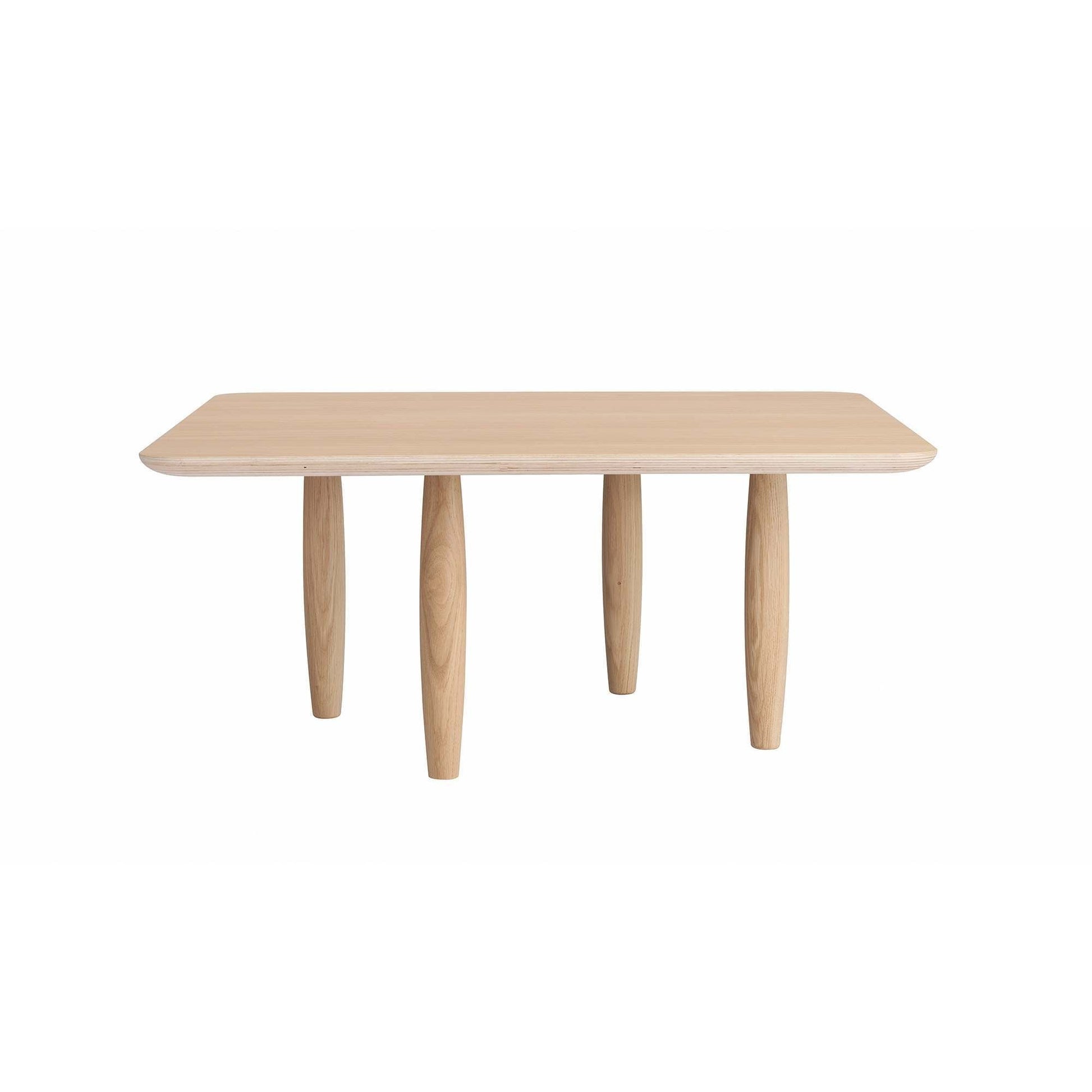 The turned oak leg timber sections are positioned sporadically creating the illusion of a floating table top, while also adding a sculptural detail to the table.