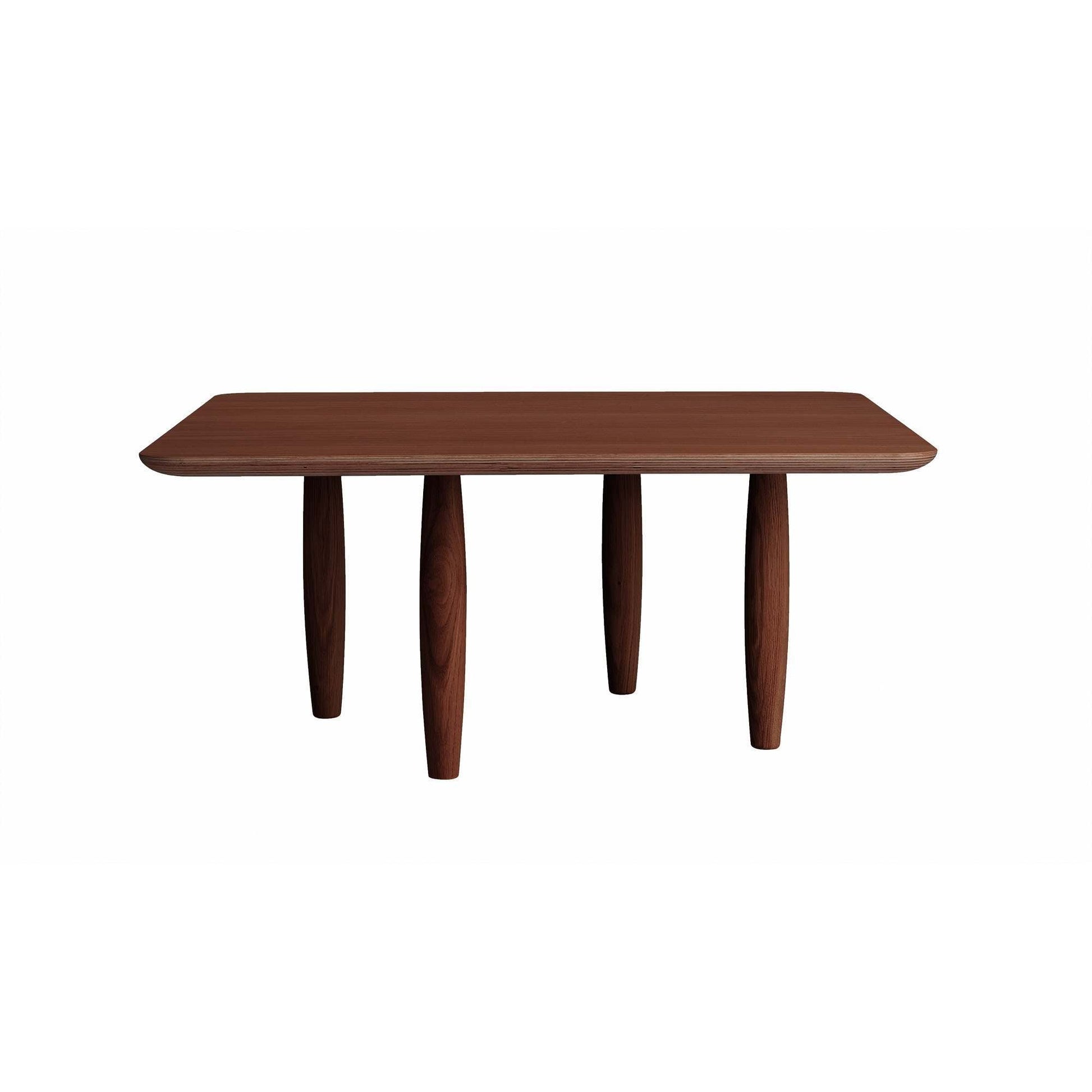 The Oku table top is produced in oak veneer with round edges, adding a refined detail to the large surface.