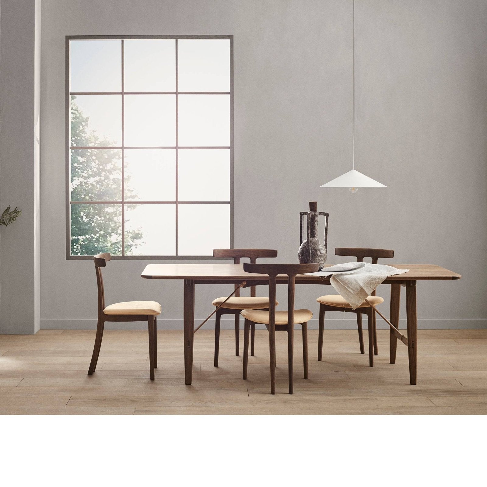 The OW58 T-Chair, designed in 1958 by Danish designer Ole Wanscher, is a striking example of sculptural minimalism and refined craftsmanship. Reintroduced with only an adjustment in height to suit today’s ergonomics, the chair remains a modern classic that balances elegance, comfort, and innovation.
