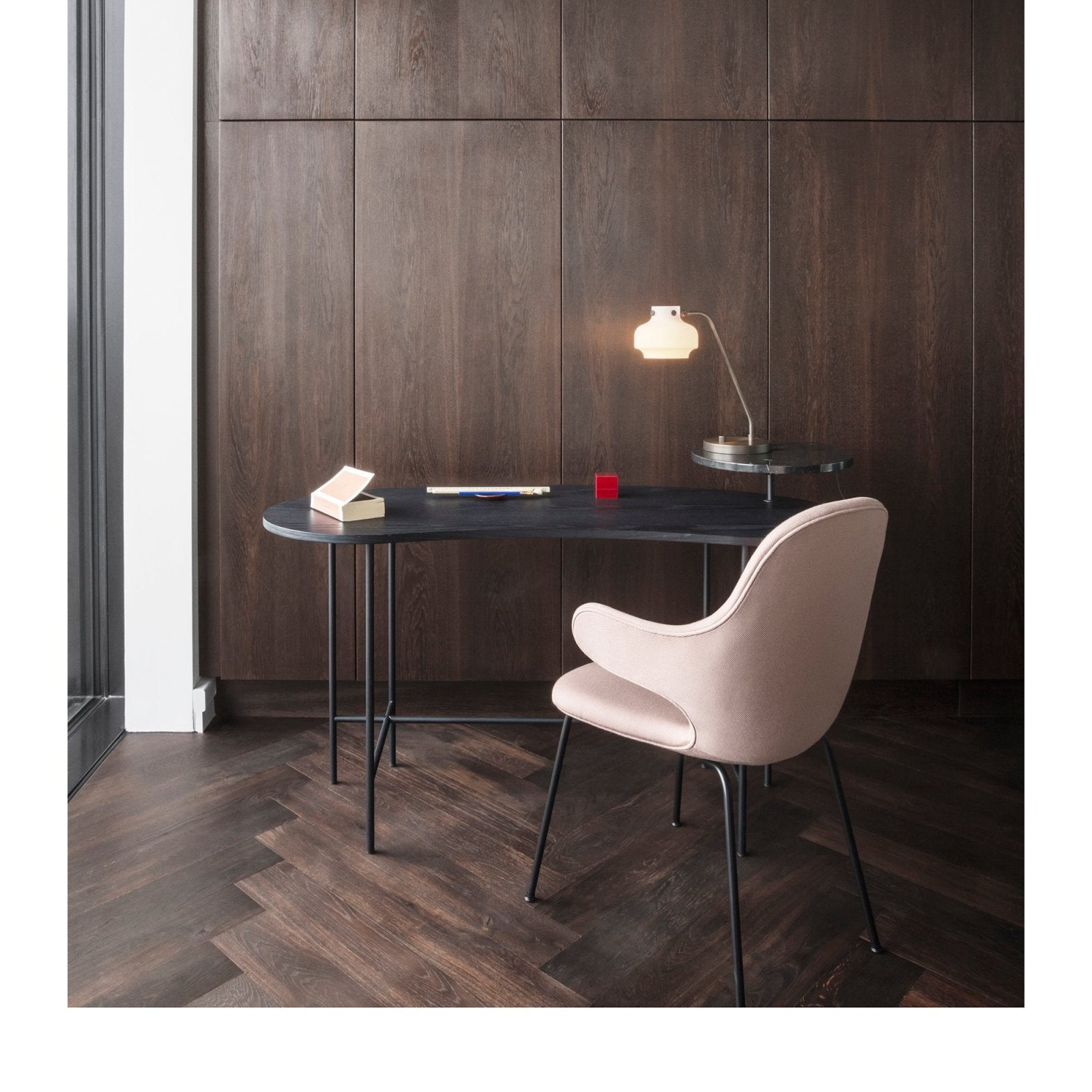 • Material: Powder coated steel, marble or brass, lacquered ash or walnut veneer