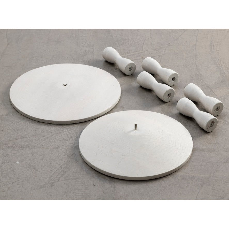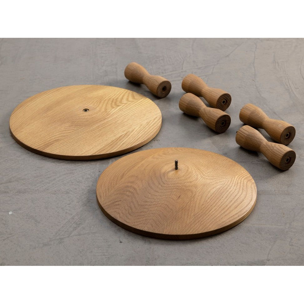 Designed by Matti Klenell, the Pedestal Table adds flexibility with five solid oak spacers, allowing the height to range from 25 to 55 centimeters. The bolts and nuts are built into the design, ensuring stability without loose parts. A hidden iron ring under the base provides extra weight for steadiness. Despite its strength, the table remains light and elegant. Made from real wood, it’s built to last, and its eco-friendly production reuses wood remnants for the spacers.