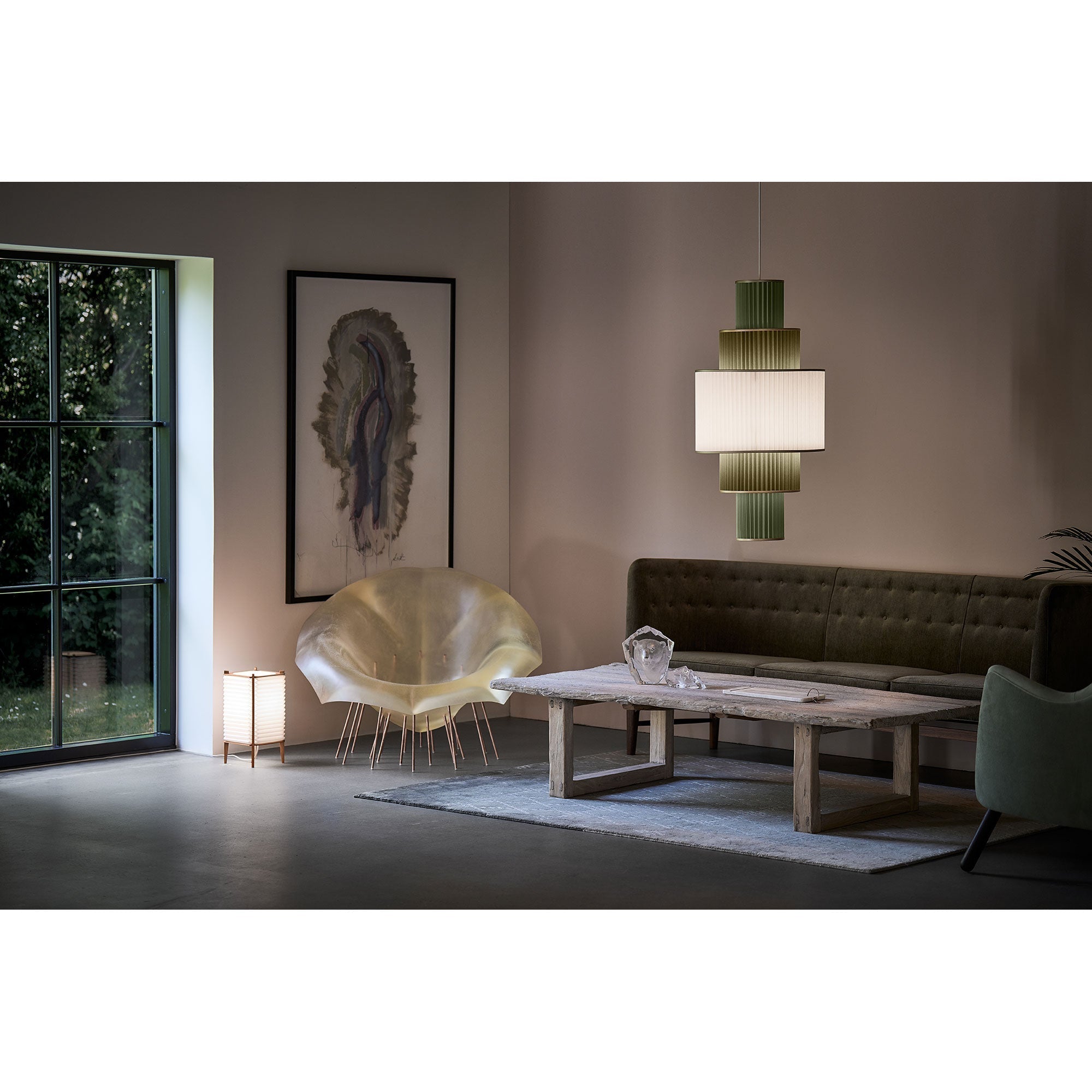 PLIVELLO has a detailed and open structure with an intricate interior that invites you in to further explore the lamp’s internal constructions, which means that it is also beautiful from below. The pendant can therefore work in many different rooms, such as in the entrance hall with high ceilings, above the dining table or as a statement piece in a corner.