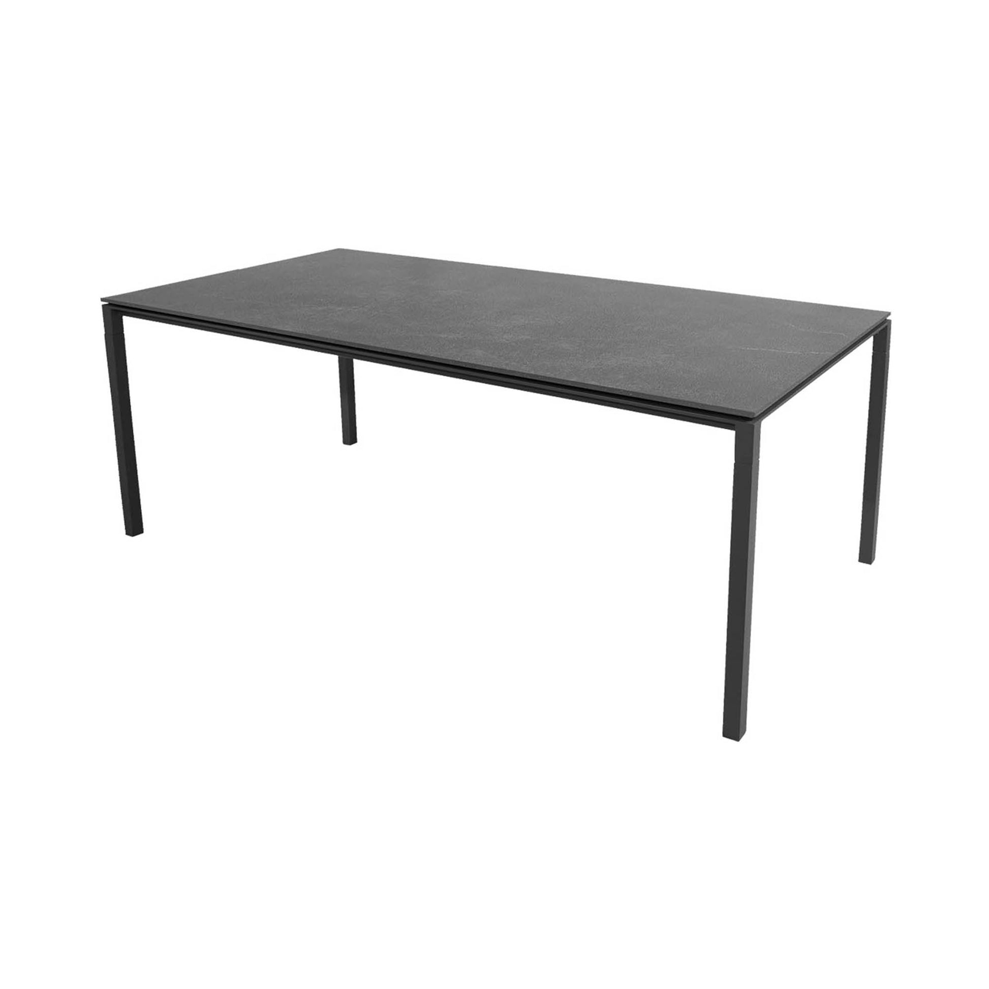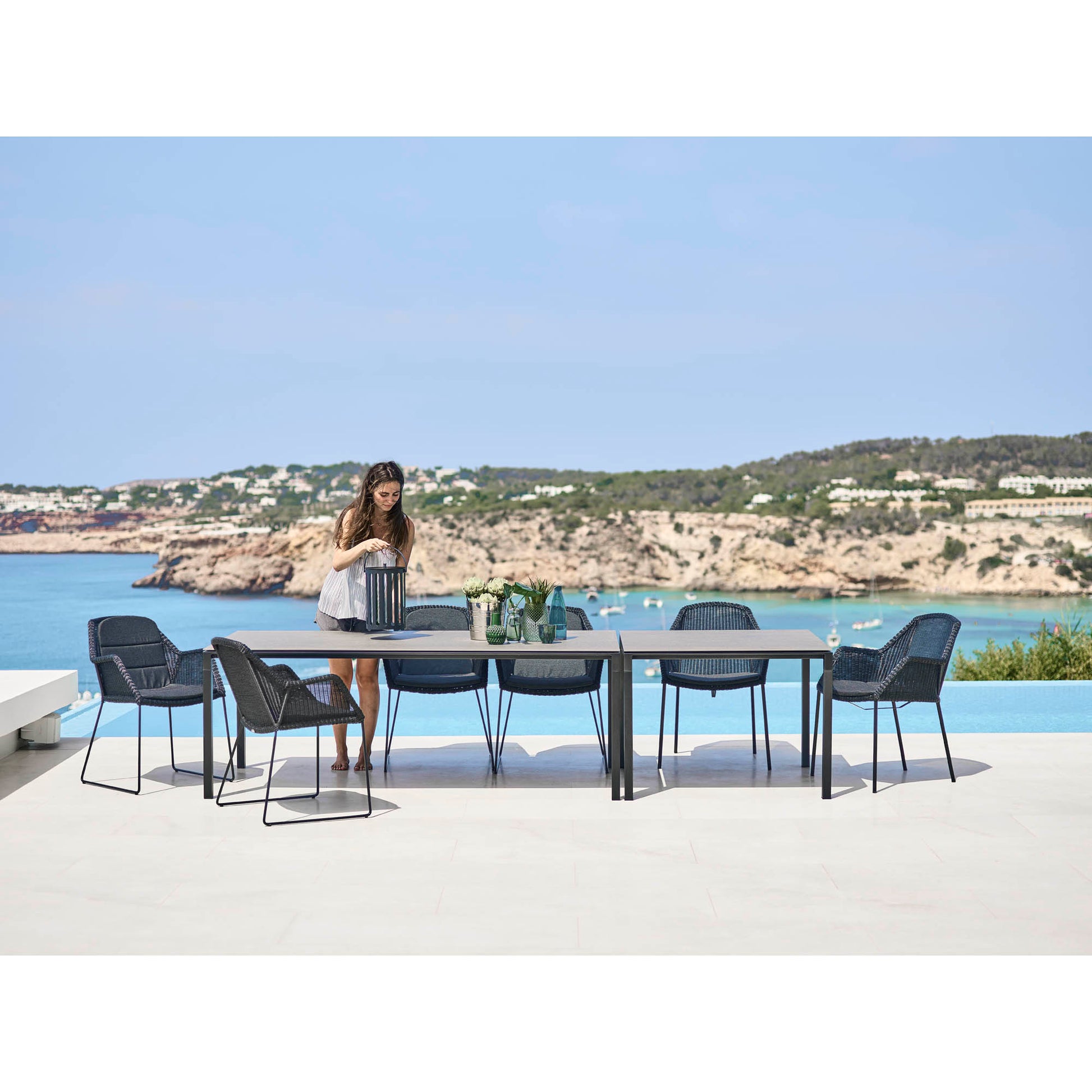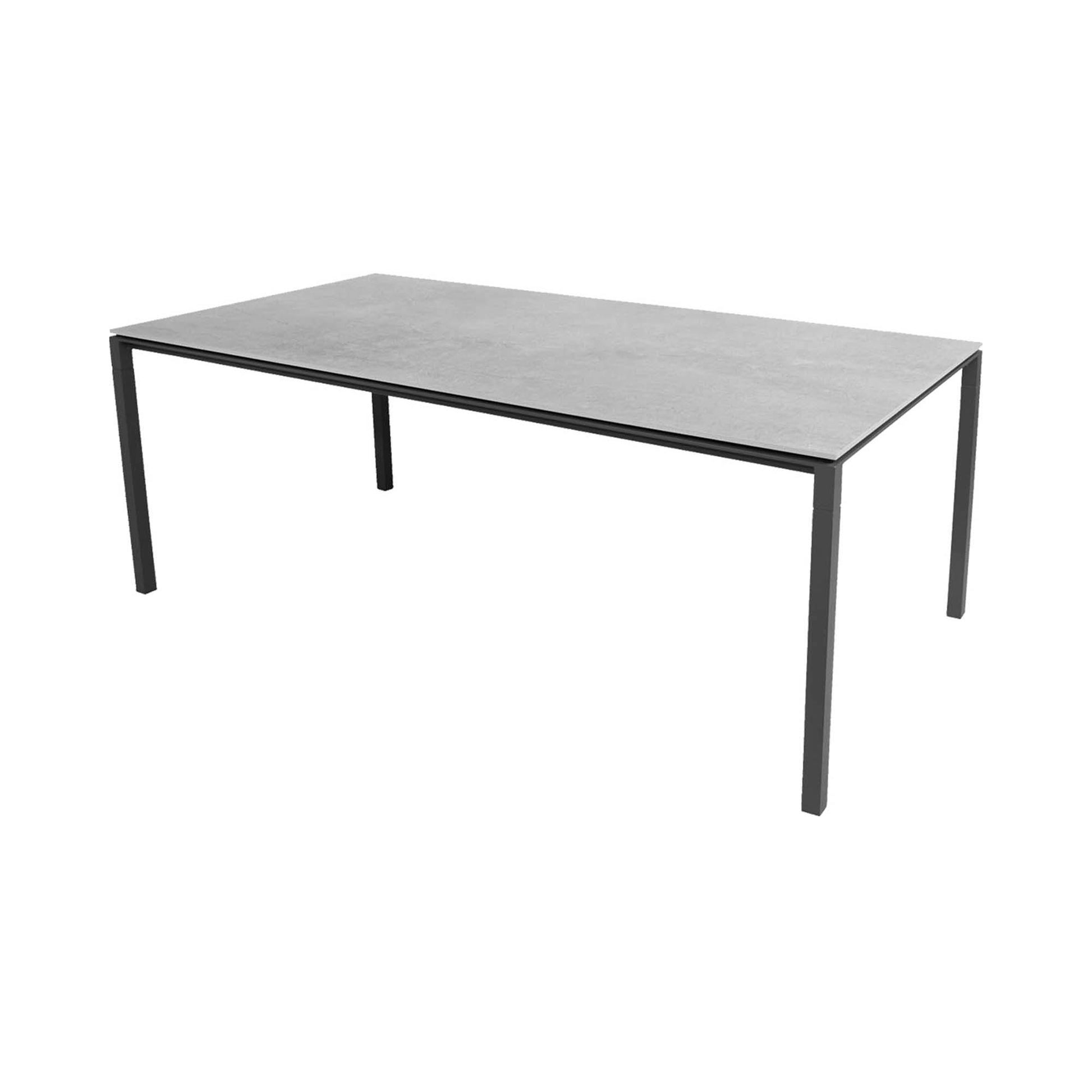 The minimalist Pure table is designed by the Danish designer duo Foersom & Hiort-Lorenzen MDD. The tabletop / tiles are made of ceramic, and the simple, clean-lined frame is offered in powder-coated aluminium. A 100% natural product, the tabletop is available in concrete grey ceramic, basalt, graphite or as a tile version in a mottled graphite. The combination makes for a light, almost floating design. The Pure table is easy to maintain, scratch-resistant and can be wiped over with a damp cloth. The table is also UV-resistant, meaning it can stand outside in all types of weather.