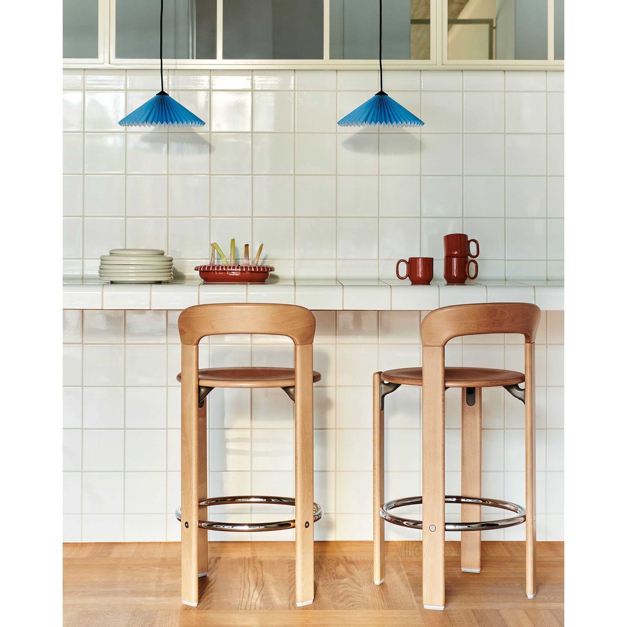 Made in solid wood with a chrome footrest, it is available in original colours, as well as new tones and upholstered seat options selected by HAY. The Rey Collection is not available from HAY in Switzerland.