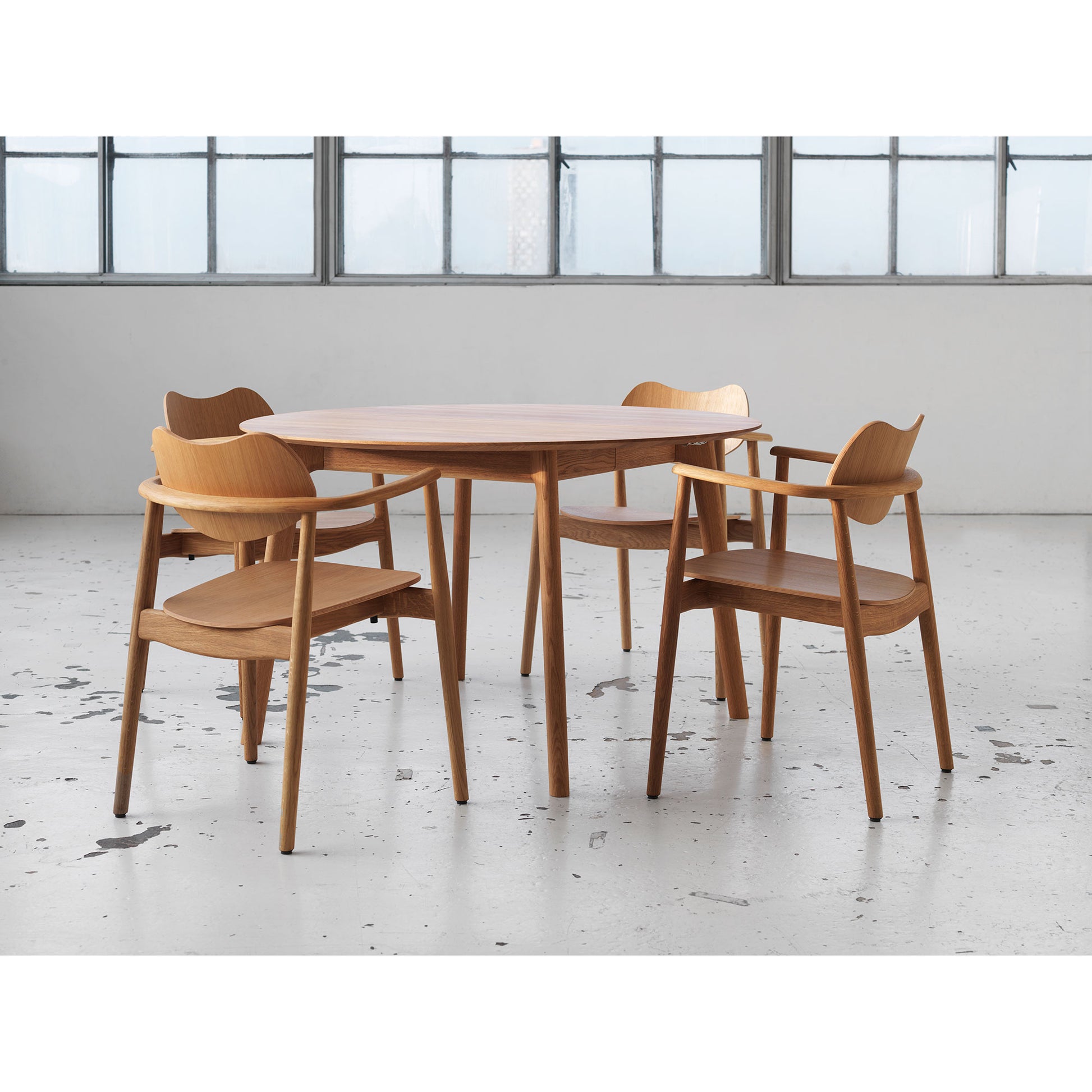 The round Salon extension table in Ø120 cm is perfect for smaller living rooms, in the kitchen or wherever you may find the need. With two extension plates, the table reaches 220x120 cm and can accommodate 8 people in armchairs. If you don't have armrests on the chairs, you'll probably be able to squeeze in more - but that's up to you to judge.