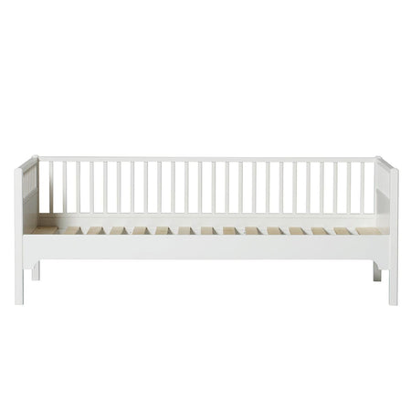 Seaside day bed with bars and simple lines. The day bed can be well used in the kids´ room for the older child, guest room or in the living room as a bed or sofa. The bed is very cosy when it is filled pillows.