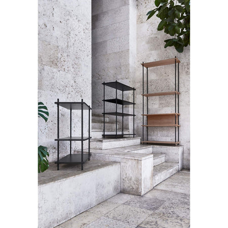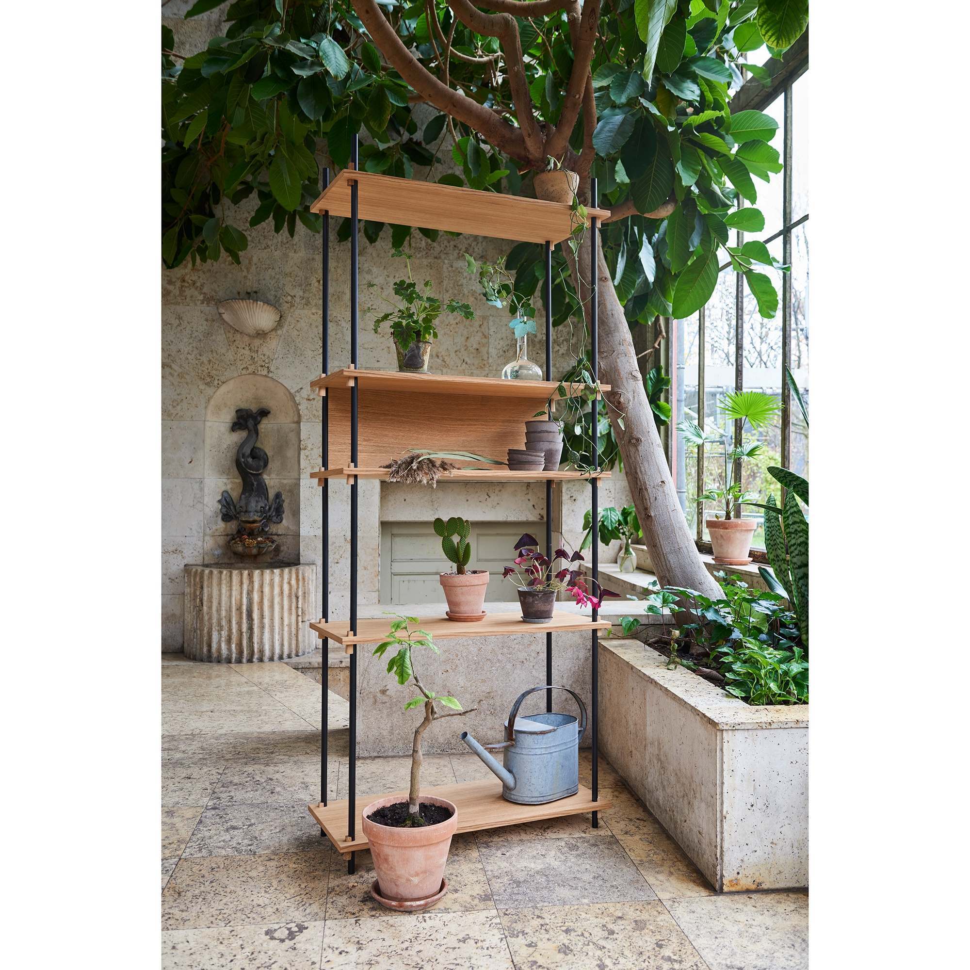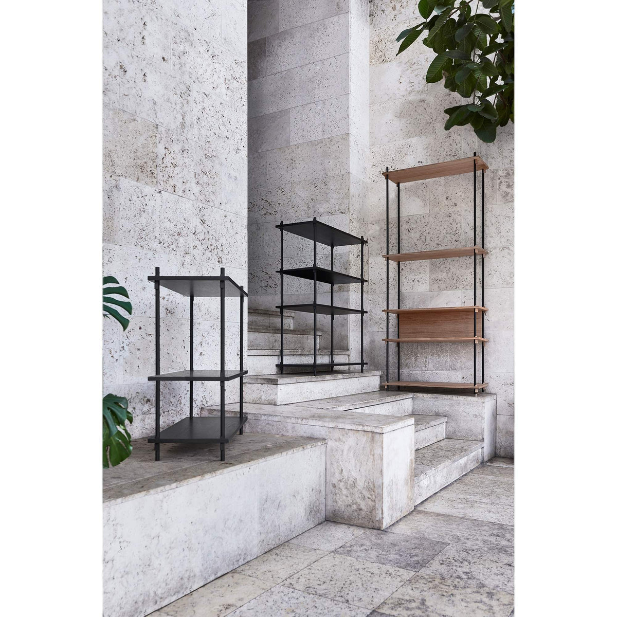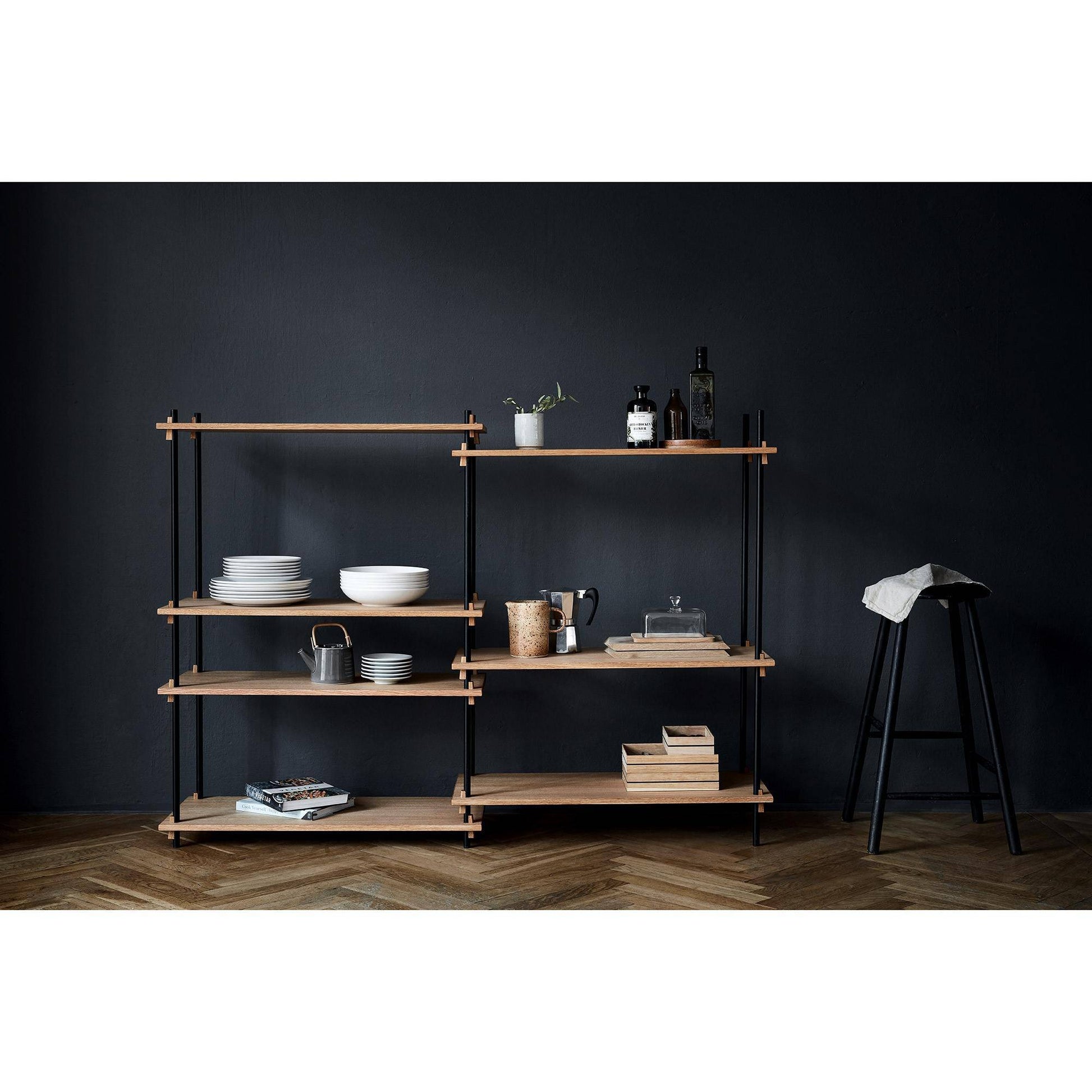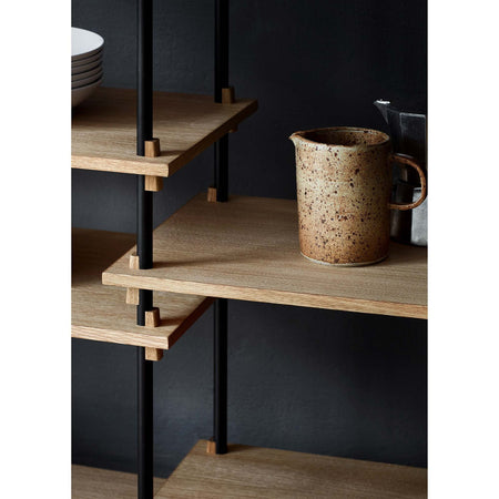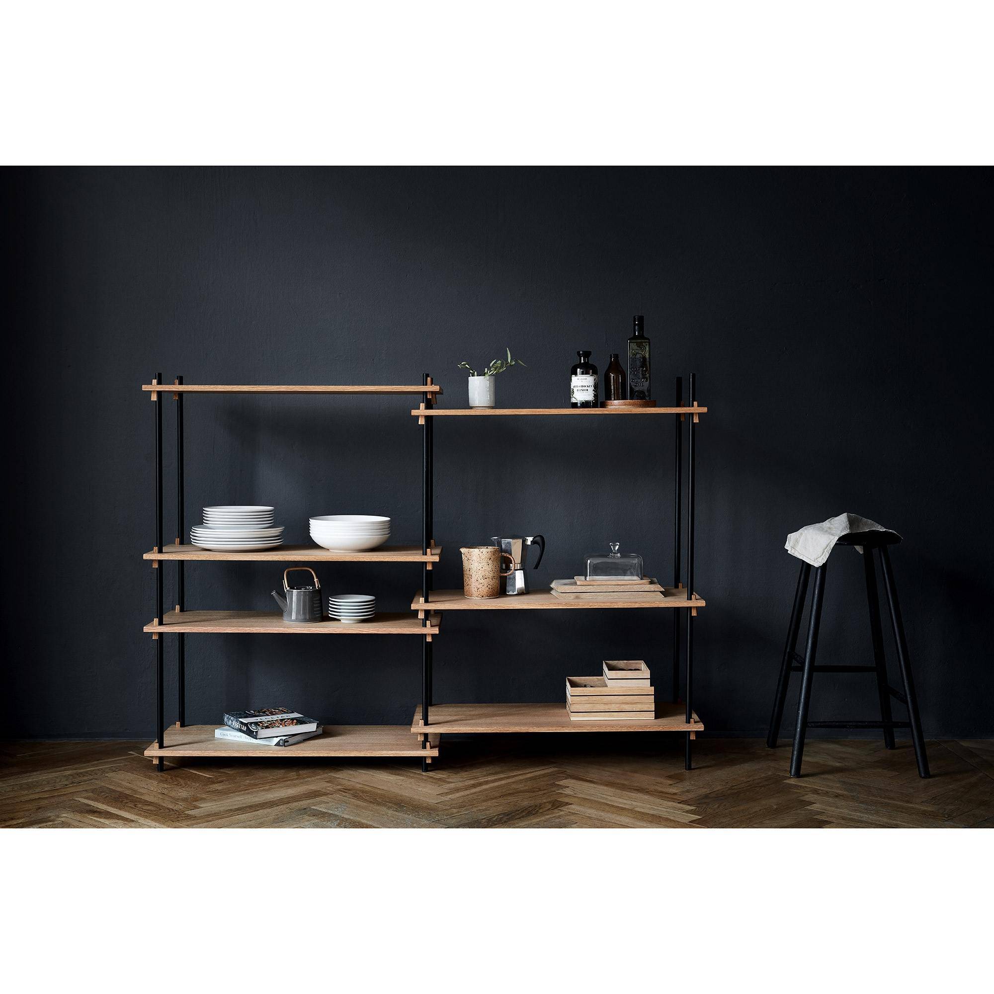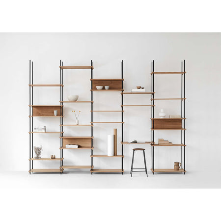 The shelving system by Moebe gives you the freedom to construct your own piece of furniture that suits your specific needs. The shelving system is built entirely from individual parts, enabling you to create entirely customised systems that perfectly match your home.