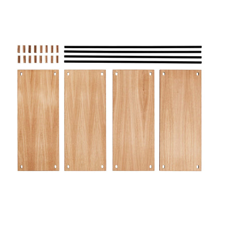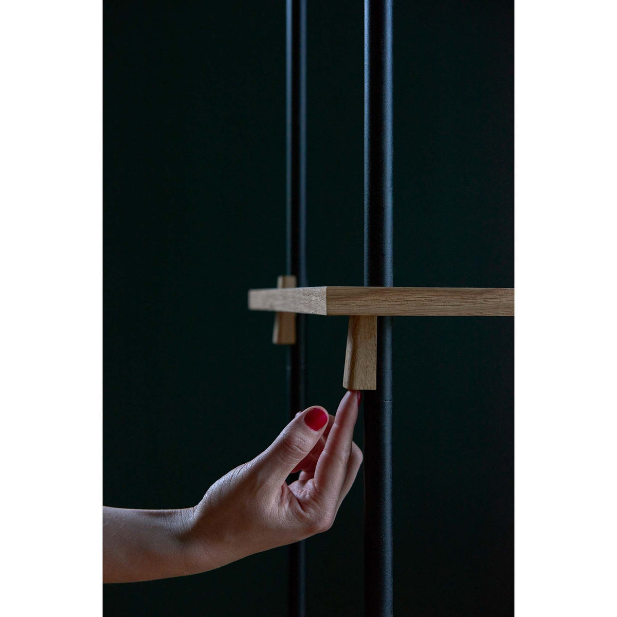 Wedges hold the shelves in place and let you place them at any height - with no limitations predefined by Moebe.
