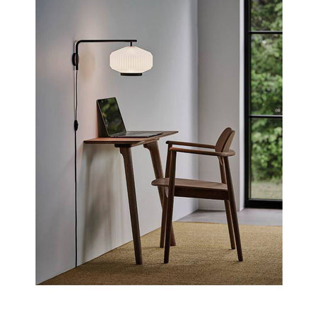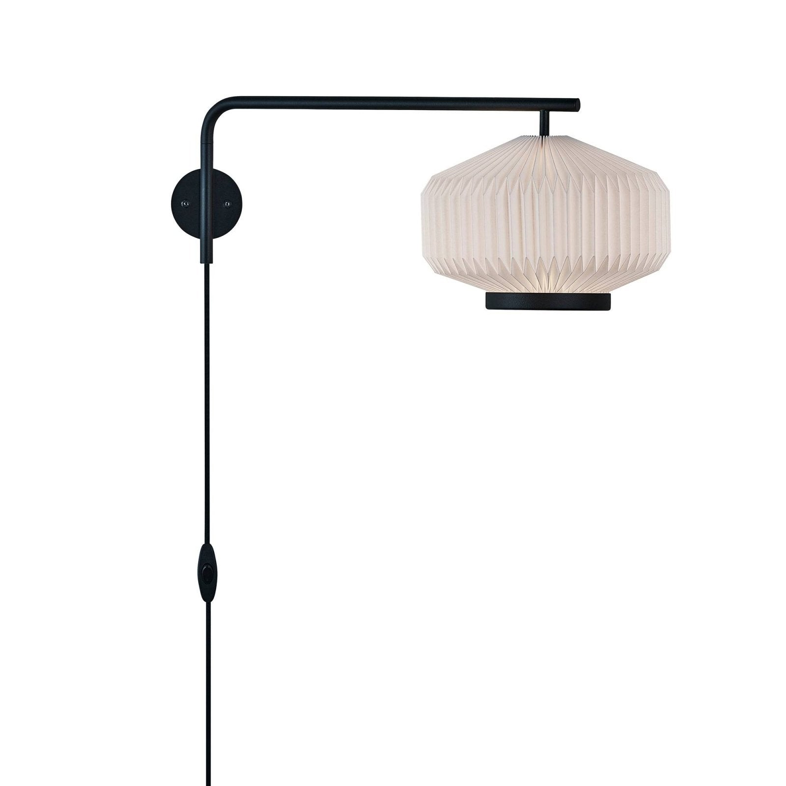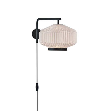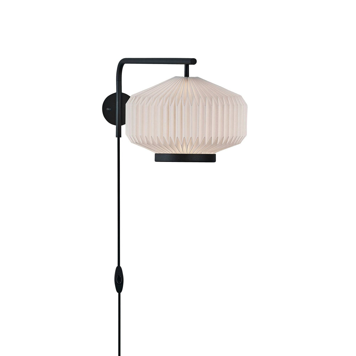 The SHIBUI wall lamp features Le Klint's classic hand-pleated shade, with a black metal ring, as well as a black lacquered floor stand.