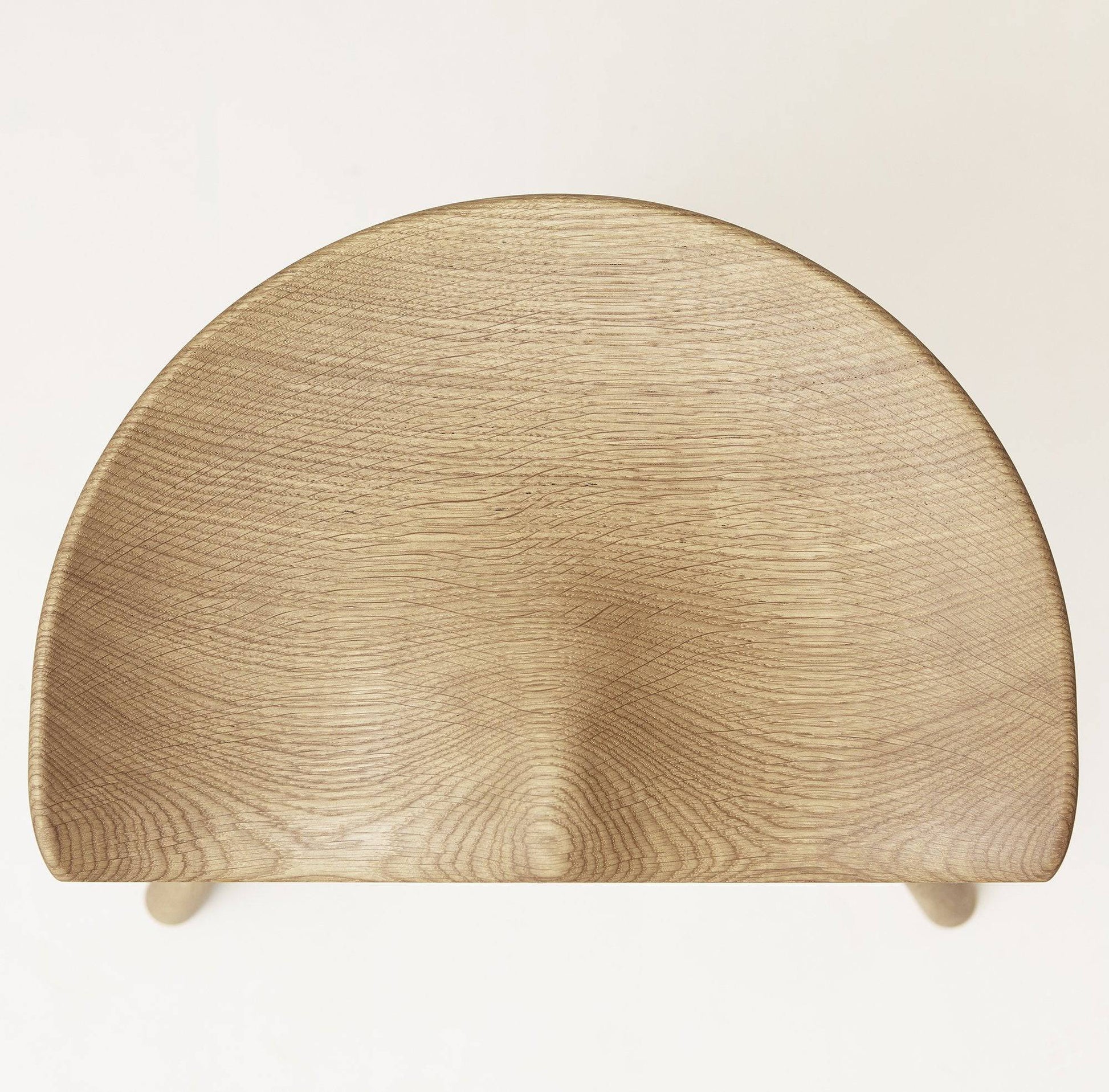 The seat is sculpted from a single piece of solid wood, and natural variations in the grain ensure no two chairs are alike.
