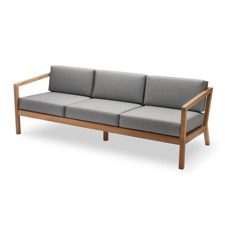 The Virkelyst Sofa, 3-Seater from Skagerak by Fritz Hansen is a modern outdoor sofa that brings the comfort of indoor furniture into open-air living. Its simple wooden frame offers a clean, architectural structure, while the generously padded cushions create an inviting and relaxed seating experience. Upholstered in weather- and water-resistant Barriere® textile, the cushions withstand the elements without compromising softness. Now available in a spacious 3-seater version, the Virkelyst Sofa combines Scandinavian elegance with everyday practicality for gardens, terraces, and patios.