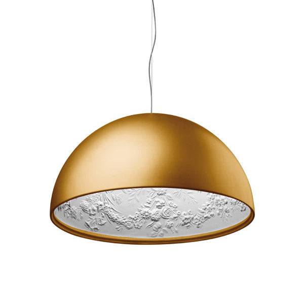 The Flos Skygarden Suspension Light reverses the rules by wearing its ornate decoration on the inside. The plaster relief decoration adds an element of surprise to this beautifully shaped dome suspension light.