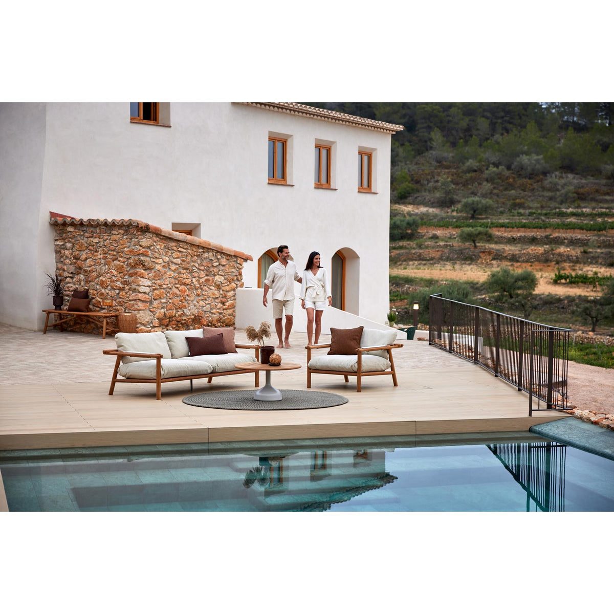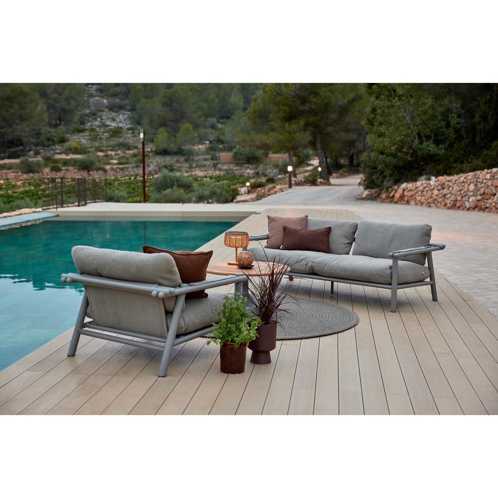 Frame: Aluminium (taupe) or teak