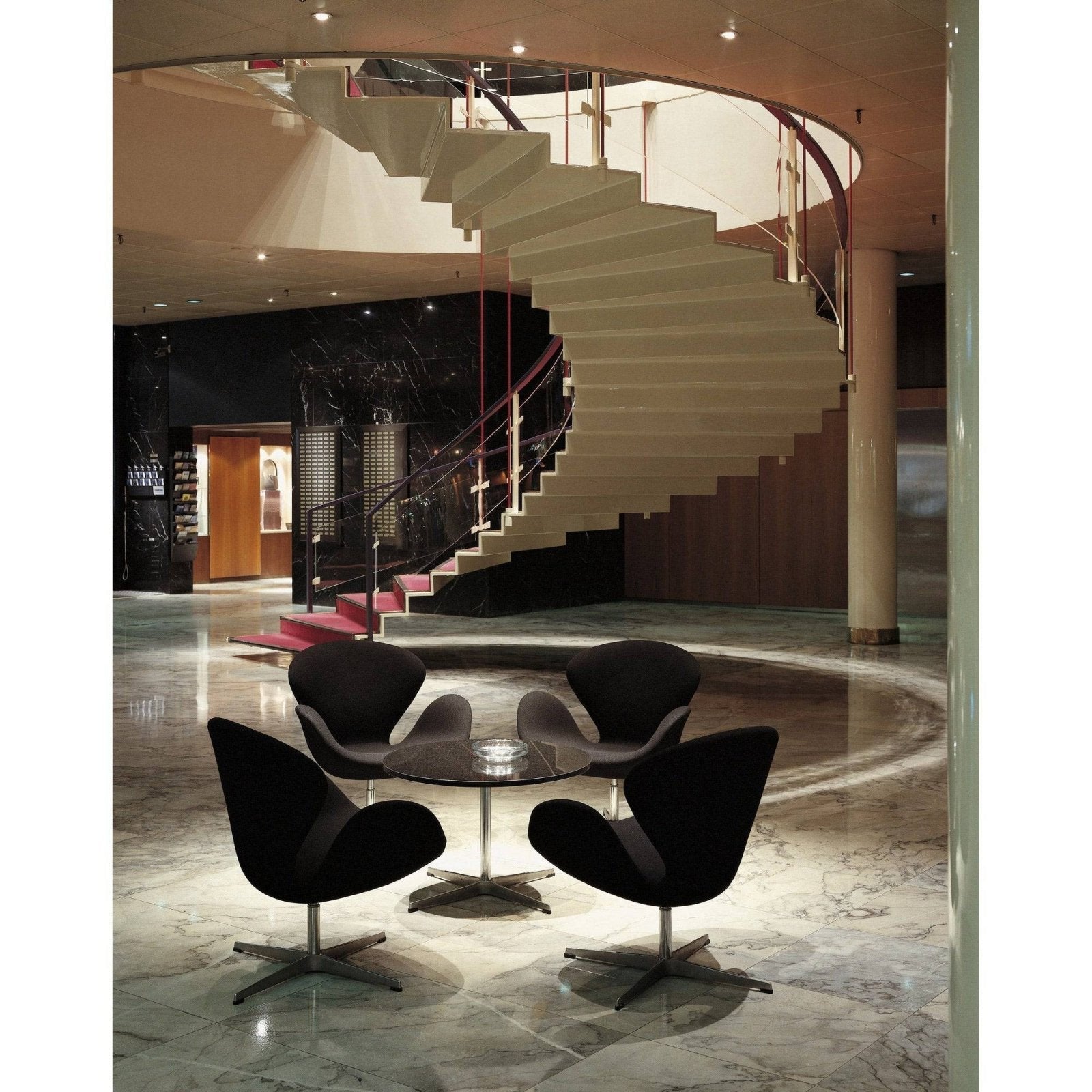 The Swan™ Chair was designed by Arne Jacobsen in 1958 for the lobby and lounge areas of the SAS Royal Hotel in Copenhagen. Regarded as the world’s first design hotel, the project was Jacobsen’s masterwork of total design — from architecture to furniture, lighting, and even cutlery. The Swan™ embodies his vision with its sculptural curves and modernist spirit, a striking departure from traditional lounge seating. Originally created for a hotel environment, the chair has since become an enduring icon of Danish furniture design.
