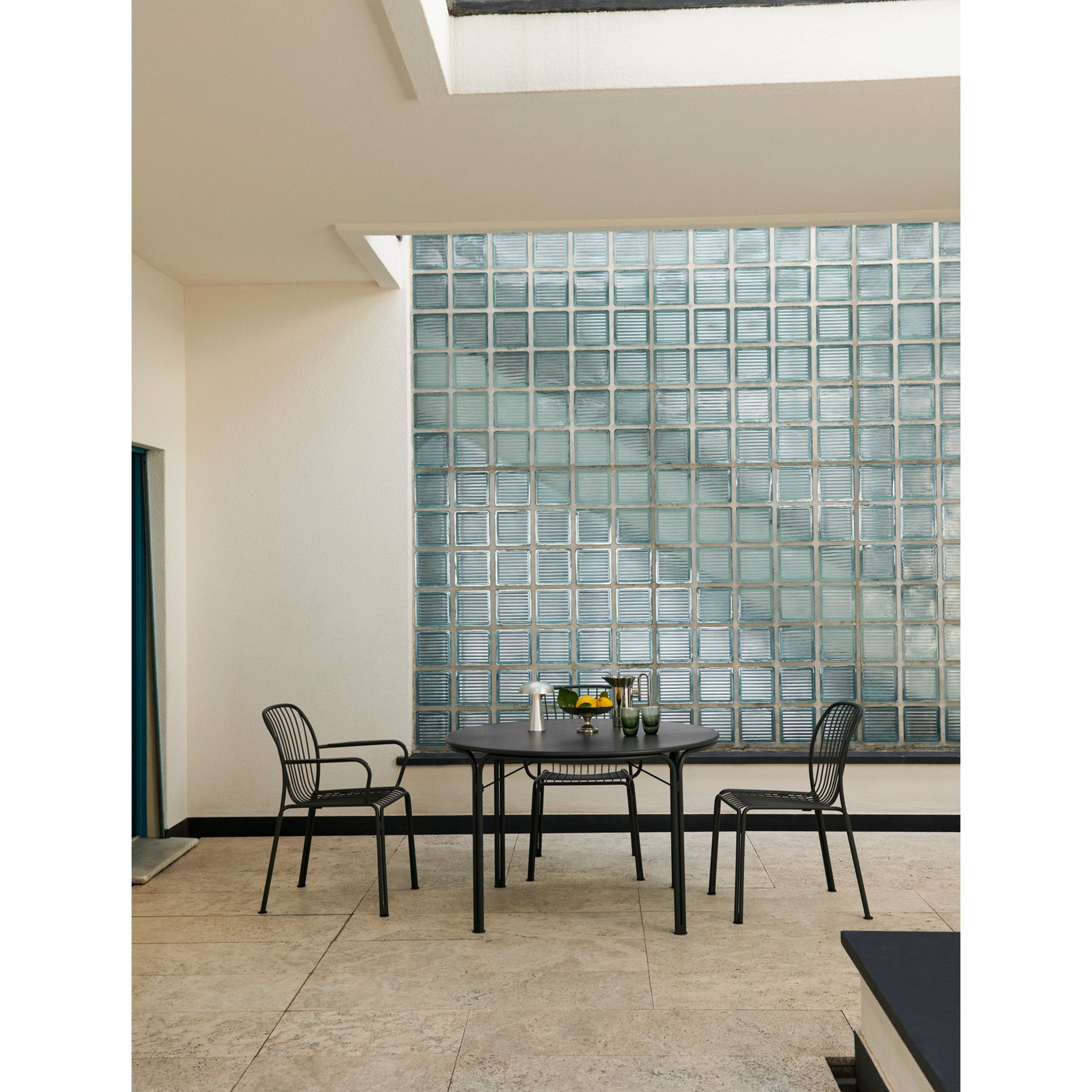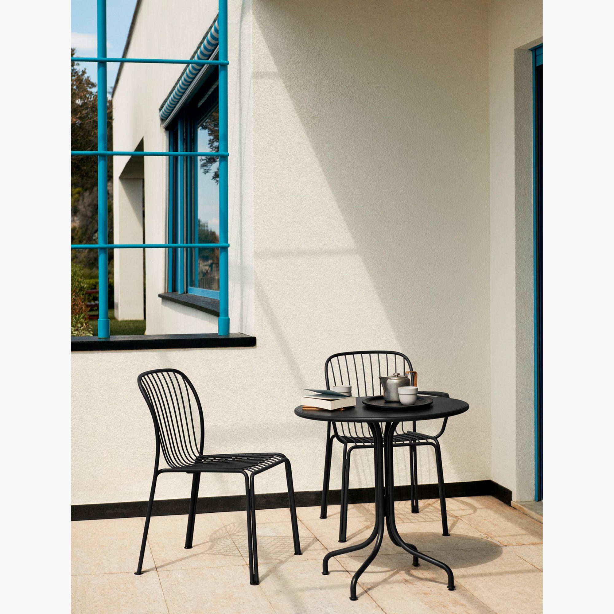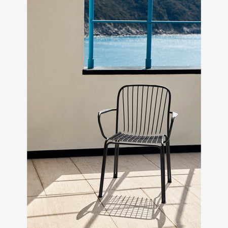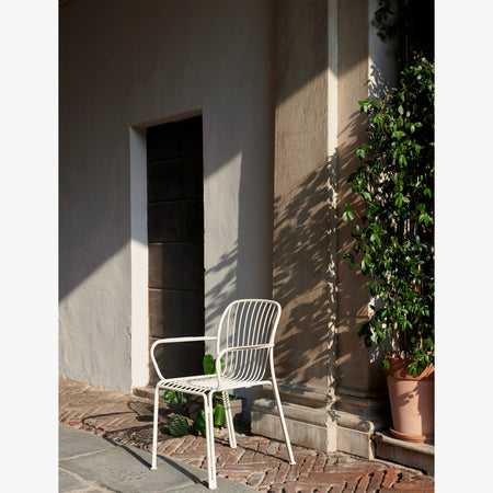 The Thorvald Collection celebrates outdoor living with sculpted silhouettes and an interplay of light and shadow. It’s a modern take on the lyrical lines of Denmark’s most esteemed neoclassical artist, Bertel Thorvaldsen and the mesmerising motifs of his eponymous museum. The steel frame juxtaposes the lightness of the grid structure, adding agility to the stackable armchair and allowing for easy placement in both nature and urban settings.