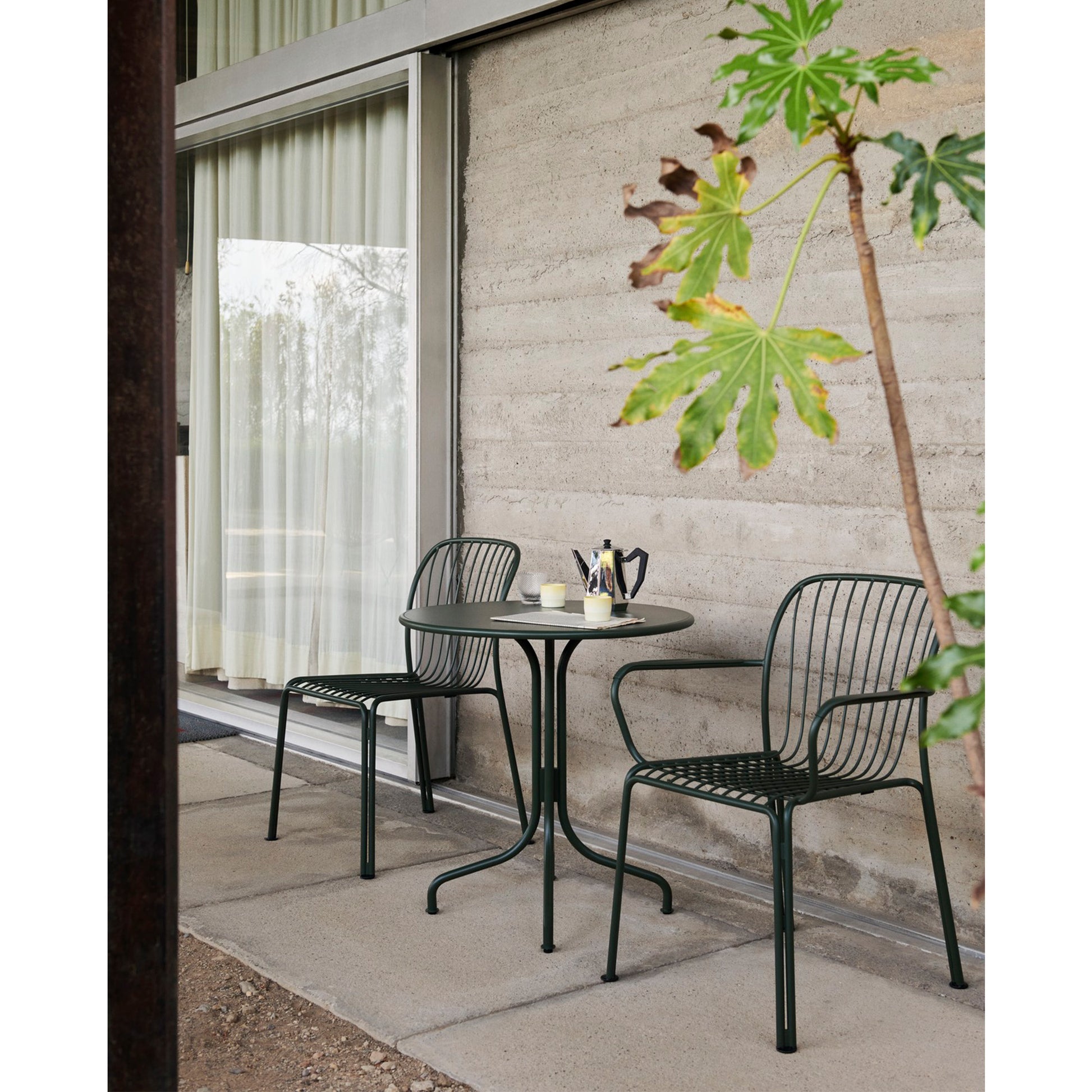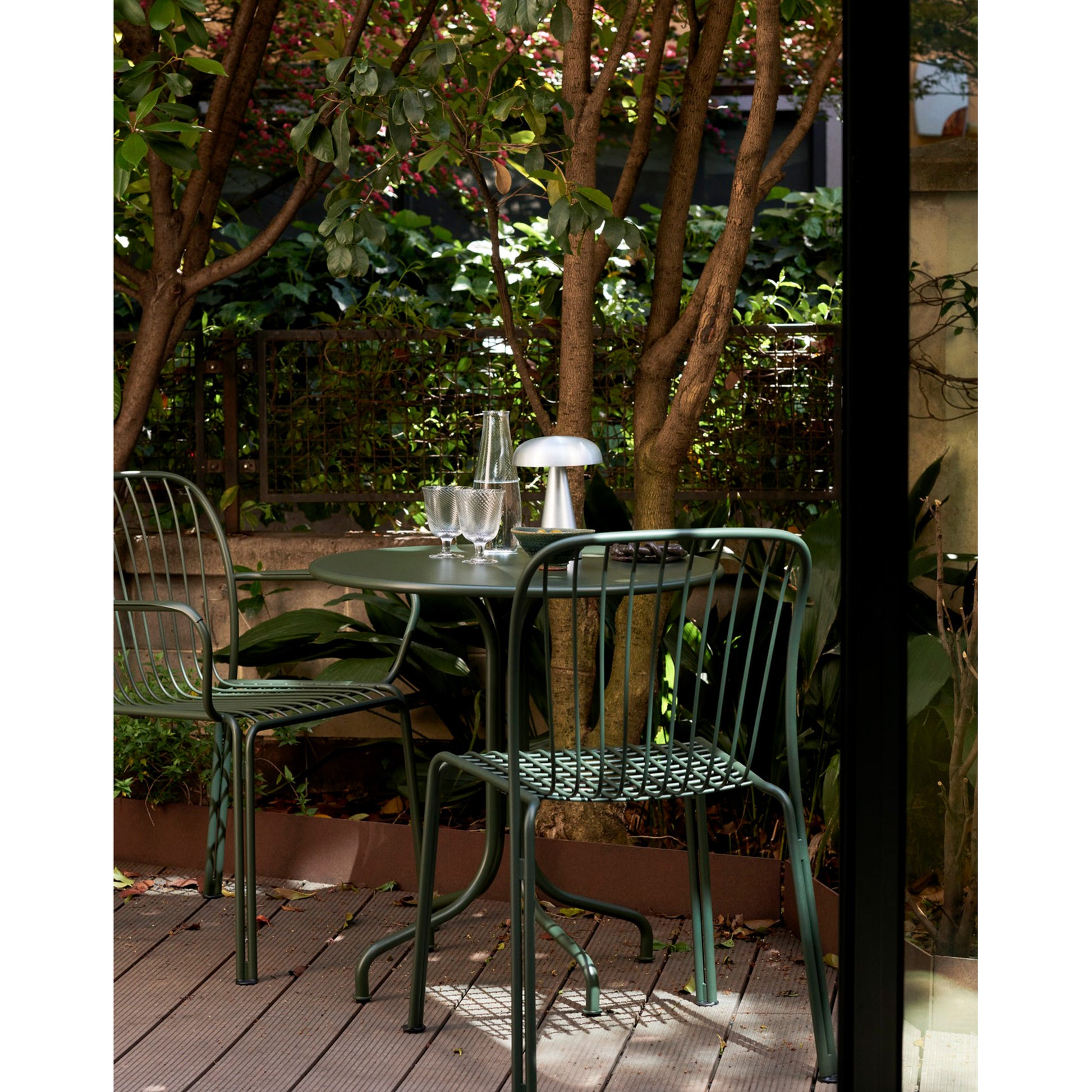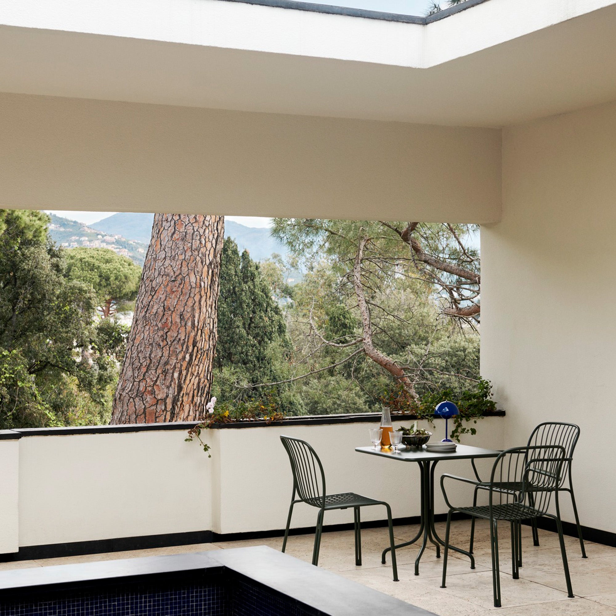 The Thorvald Collection celebrates outdoor living with sculpted silhouettes and an interplay of light and shadow. It’s a modern take on the lyrical lines of Denmark’s most esteemed neoclassical artist, Bertel Thorvaldsen and the mesmerising motifs of his eponymous museum. The steel frame juxtaposes the lightness of the grid structure, adding agility to the stackable armchair and allowing for easy placement in both nature and urban settings.