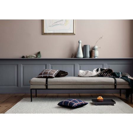 The strict horizontal lines, along with its slim metal legs in powder coated metal gives this daybed an elegant and light appearance.