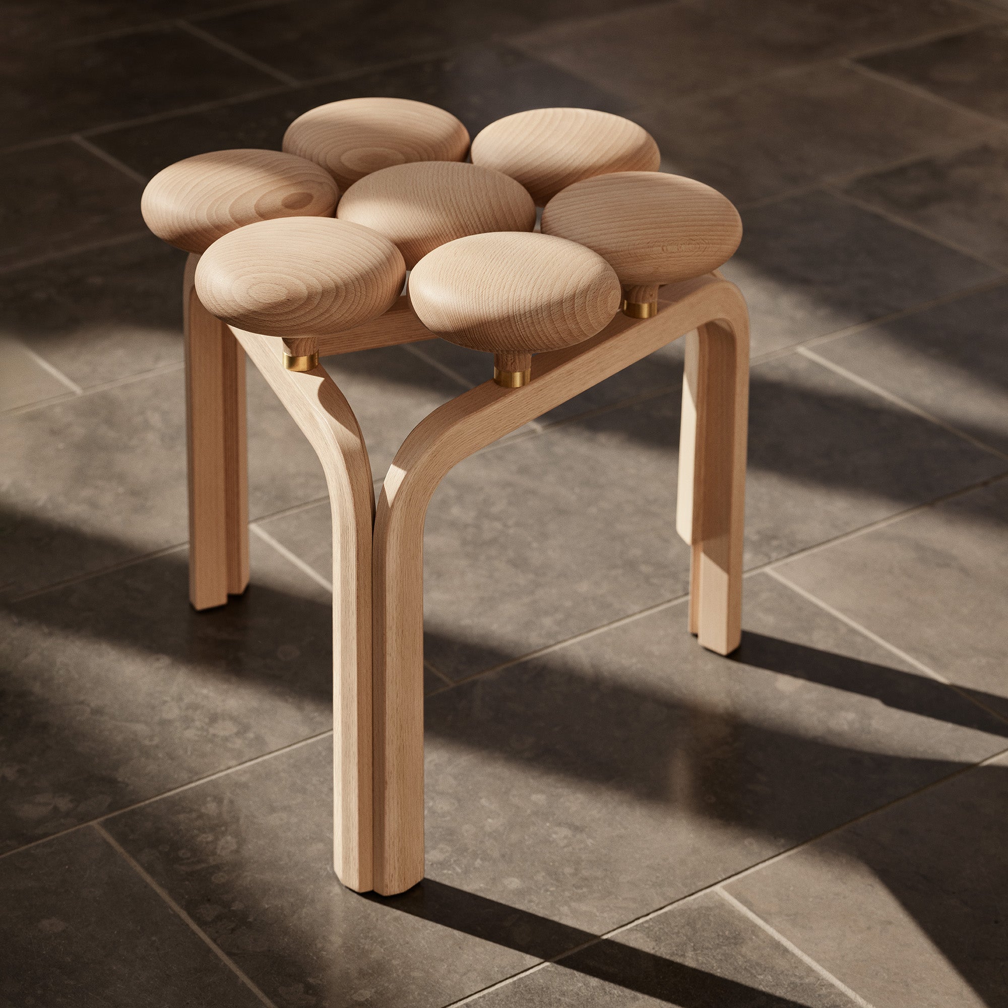 Crafted from oiled solid beech wood, veneered beech, and accented with brass detailing, the Utzon Stool combines decorative appeal with meticulous craftsmanship, making it as captivating to look at as it is to use.