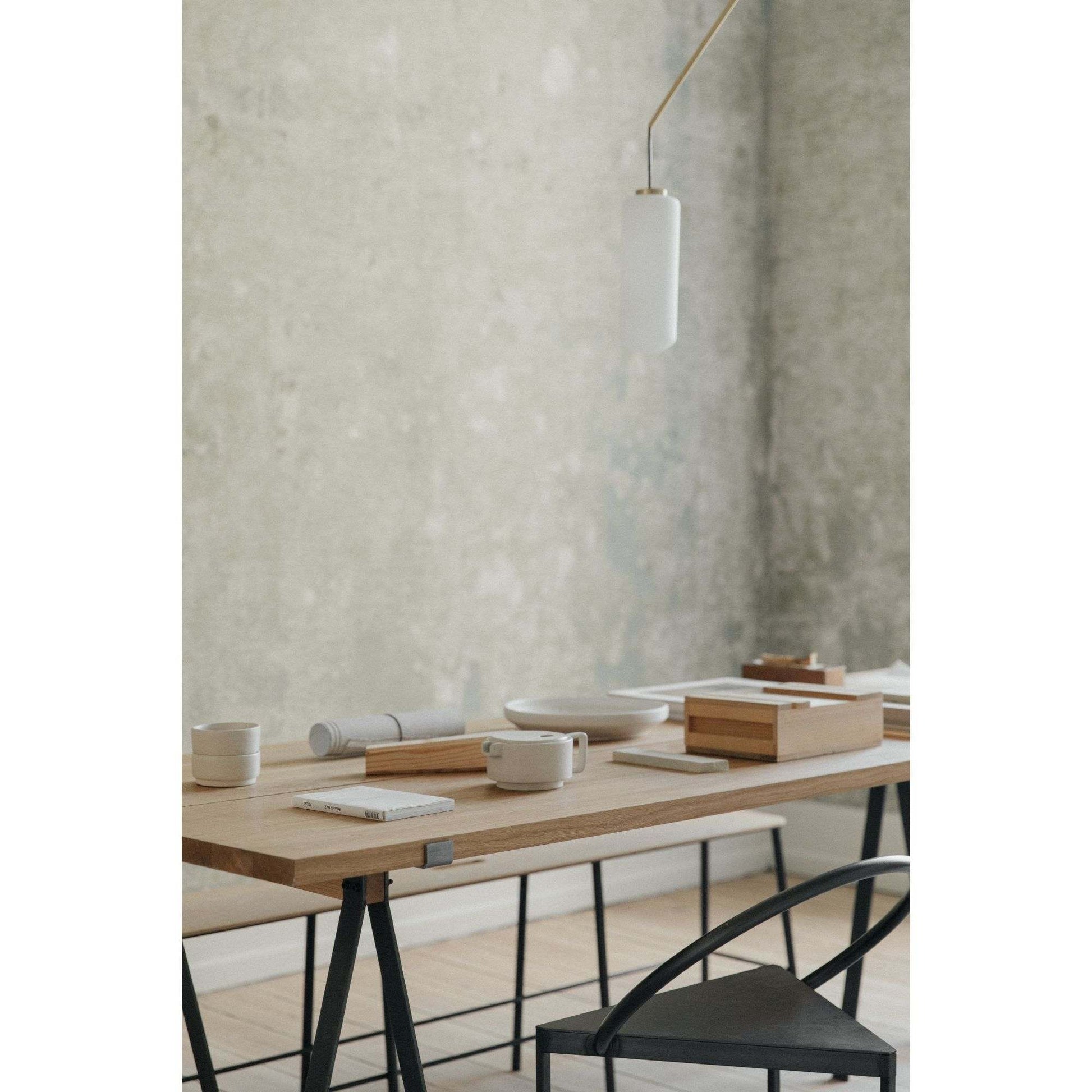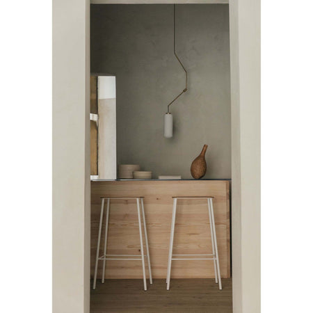 The Ventus pendant lamps are a collaboration between Frama and Danish designers Included Middle, in which the traditional pendant cord receives an architectural bend, creating new forms in the environment it is placed. The pendant is capped off by an opal glass light shade which exudes the warm glow of an integrated LED bulb within.
