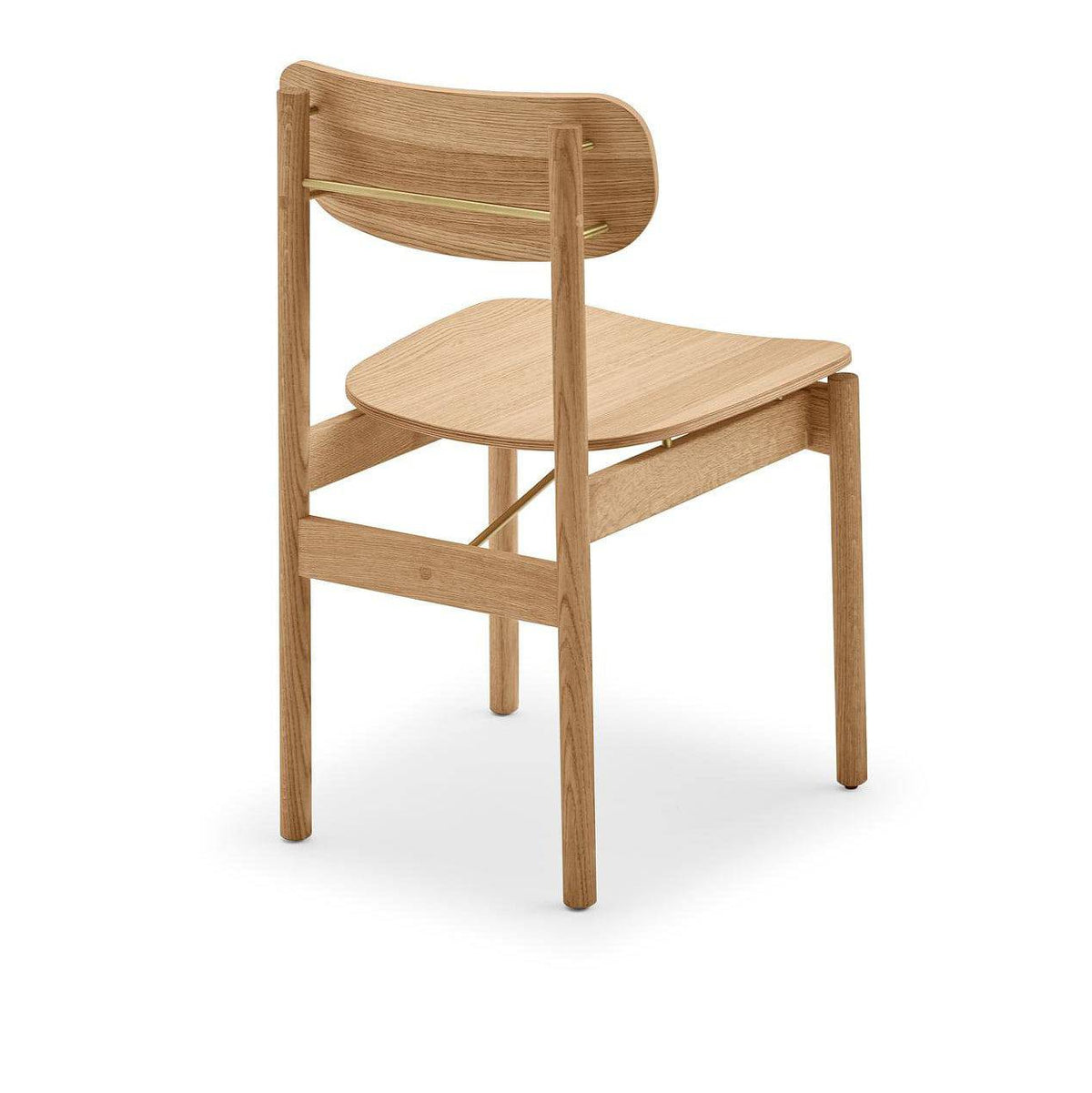 The Vester Chair from Skagerak by Fritz Hansen is a discreetly elegant dining chair developed for the historic seaside retreat, Svinkløv Badehotel. Designed in golden oiled oak with refined brass details, it balances understated sophistication with practical functionality. A transverse brass rod highlights where the chair is pulled out, while the oak legs extend into the backrest to form subtle hooks – perfect for hanging a purse or jacket. With its well-proportioned design and natural materiality, the Vester Chair is as comfortable as it is timeless.