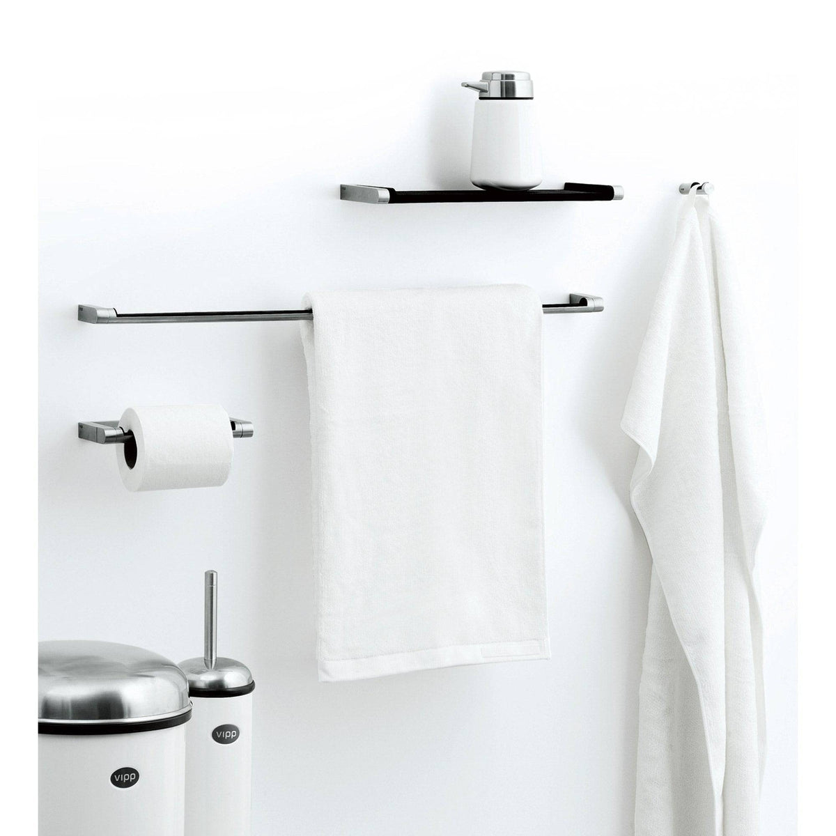 Together with the shower shelf, toilet roll holder and hooks, the Vipp towel bar provides subtle details in solid stainless steel and durable rubber in style with the Vipp collection.