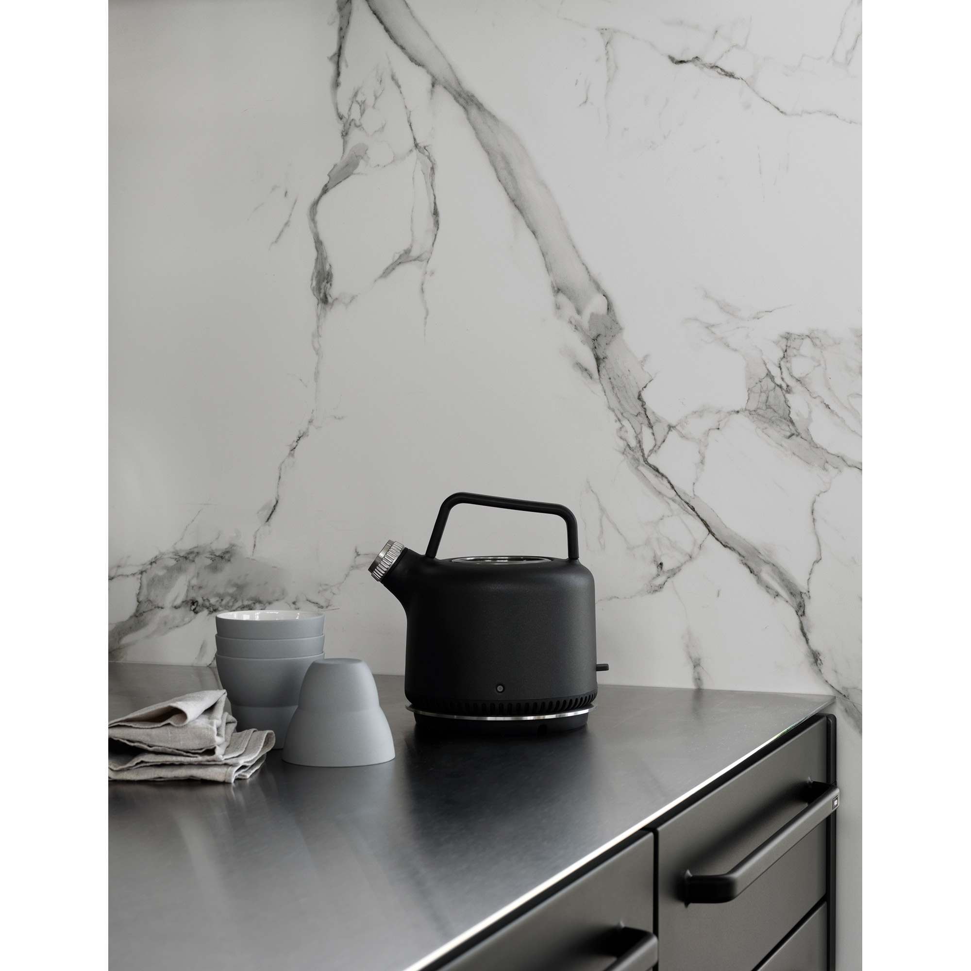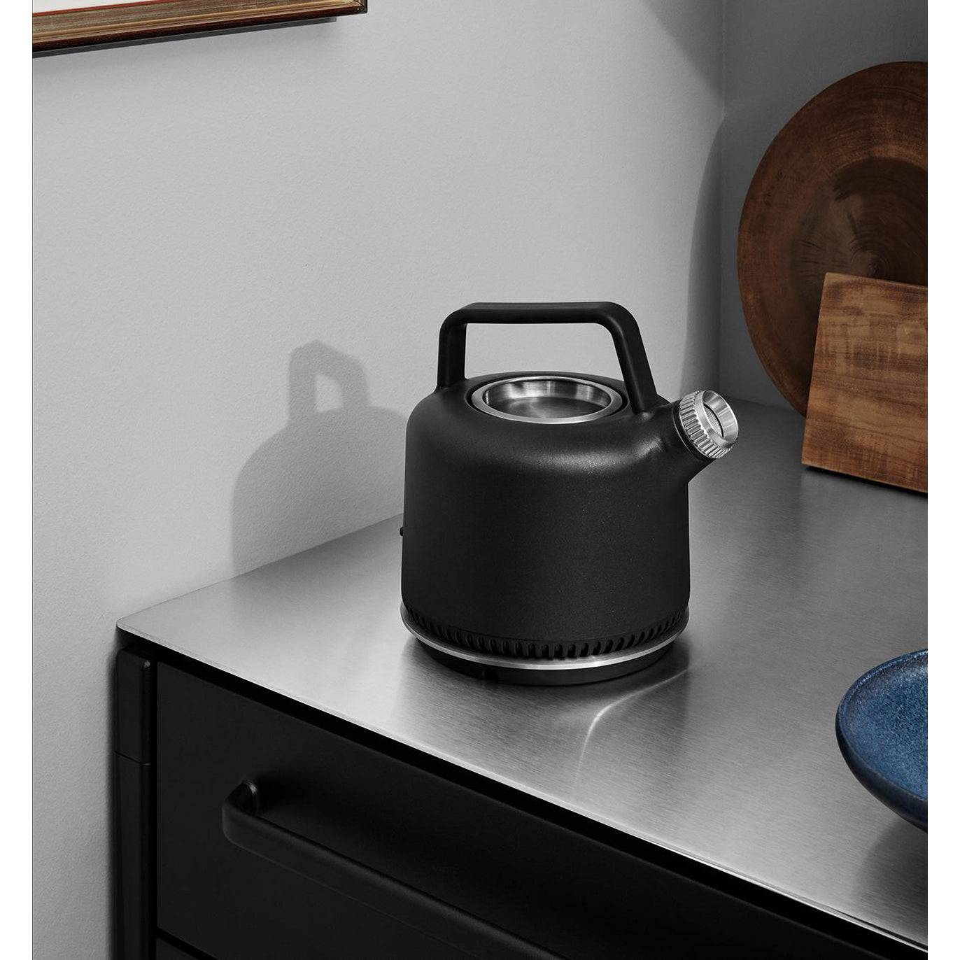 The Vipp501 Electric Kettle pairs seamlessly with the Vipp Kitchen Collection, including the Vipp Coffee and Tea accessories, for a cohesive Scandinavian design setup. Its minimalist black design also complements modern countertops and open kitchen spaces.