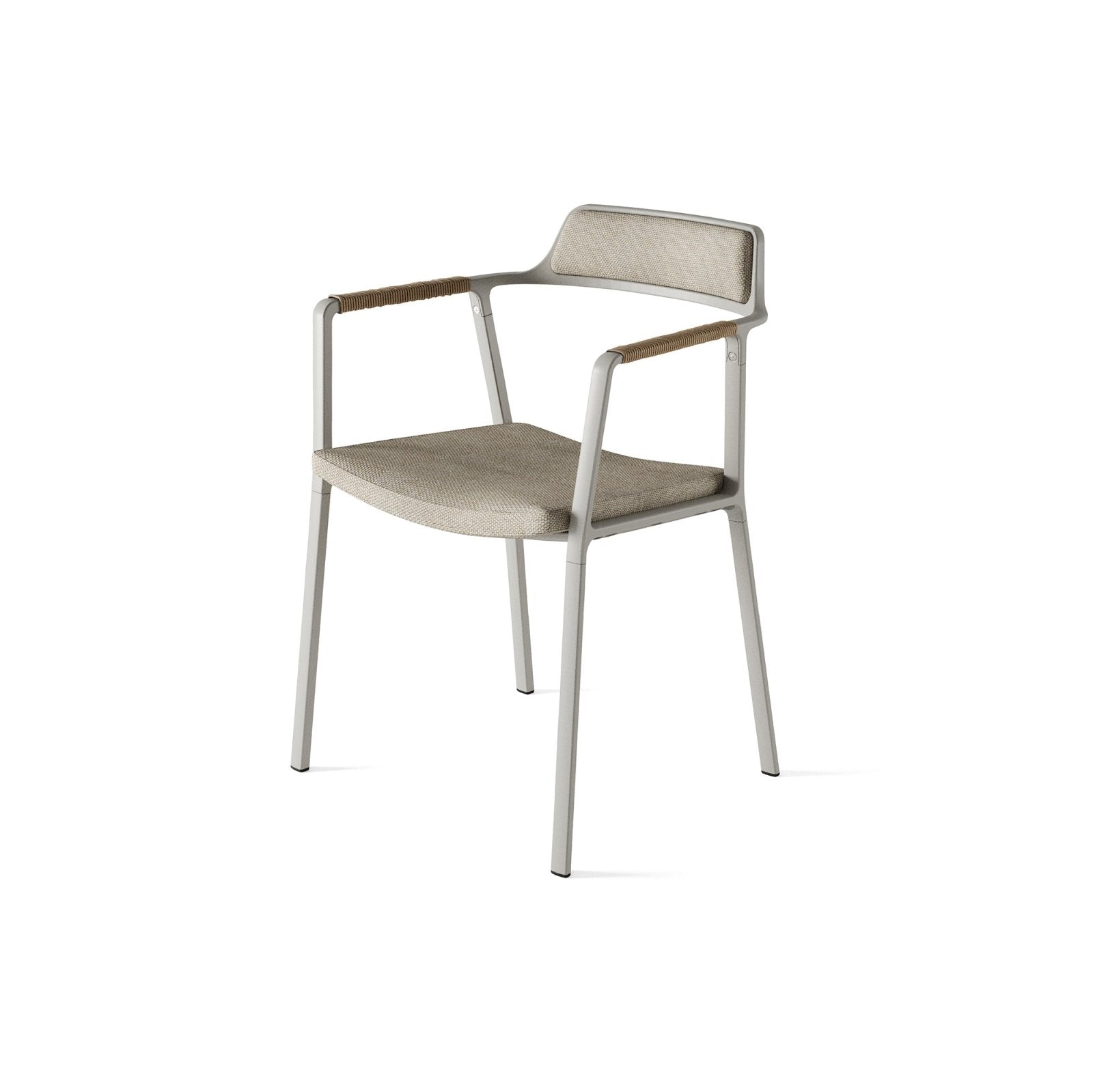 The Vipp711 Outdoor Chair is the outdoor reinterpretation of Vipp’s very first chair, the Vipp451. Built on a solid aluminium frame with slim, rattan-covered armrests, it carries forward the airy, minimalist expression of the original design. A discreet padded backrest and durable seat cushions provide comfort and resilience, ensuring the chair is as functional in changing weather conditions as it is elegant in form.