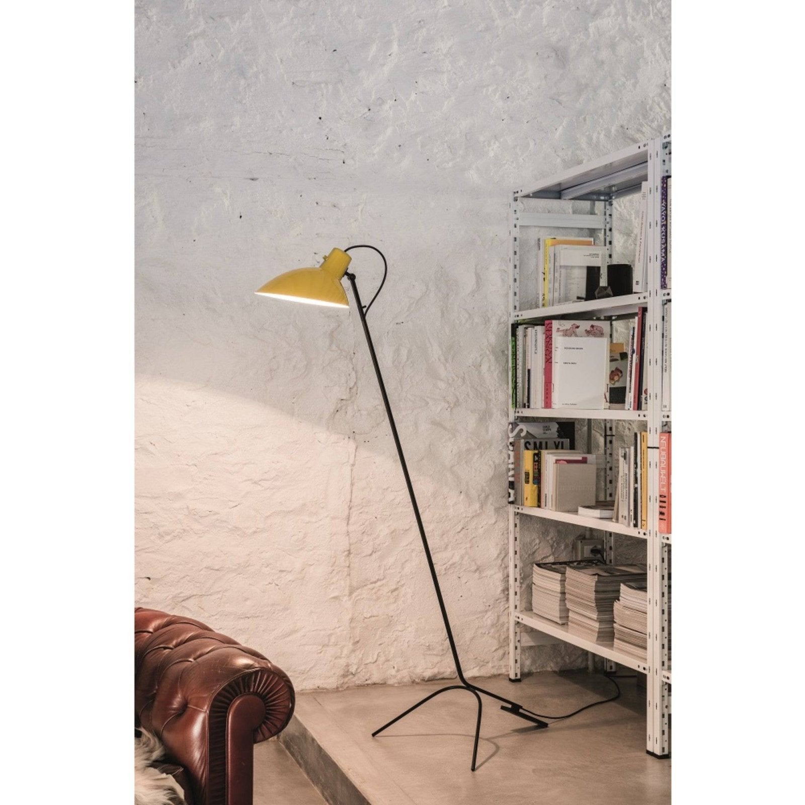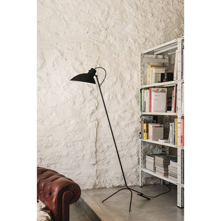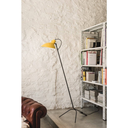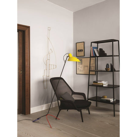The VV Cinquanta features an elegant and versatile posable direct light source that can swivel and tilt, from direct working light to upward lighting. The VV Cinquanta Floor model stands gracefully on a slender black aluminium frame. The VV Cinquanta reflector is made of enamelled spun aluminium, available in original Vittoriano Viganò colours. The reflector is mounted to an articulated stem that can swivel and tilt, enabling various lighting scenarios.