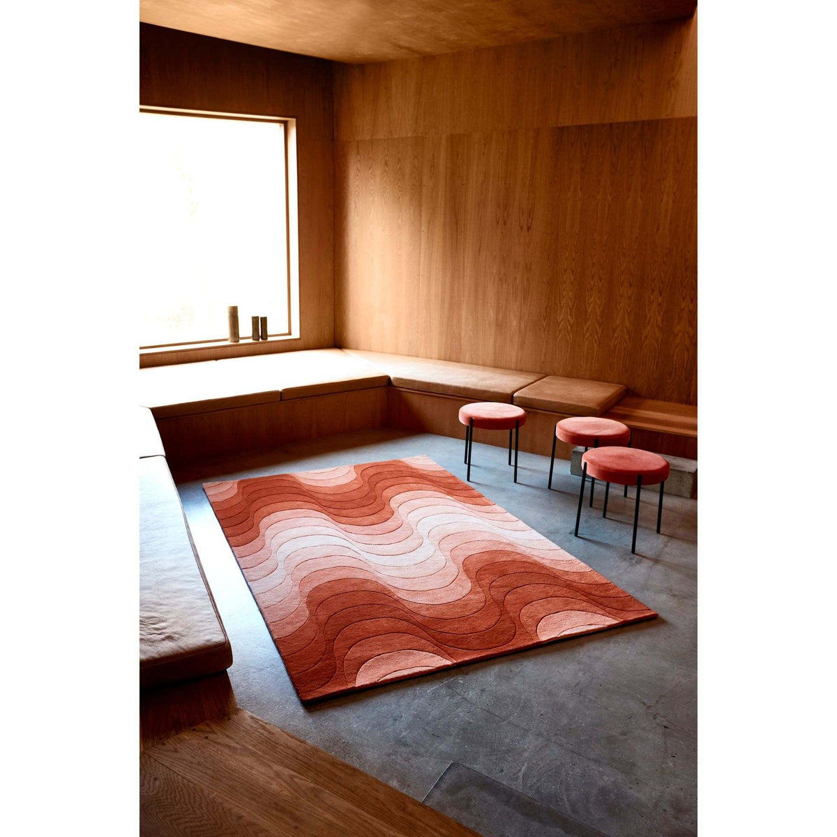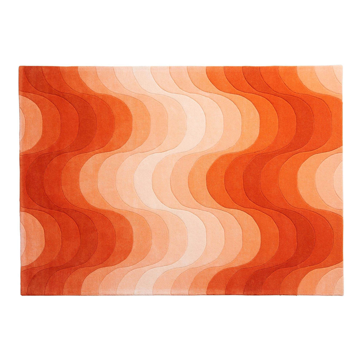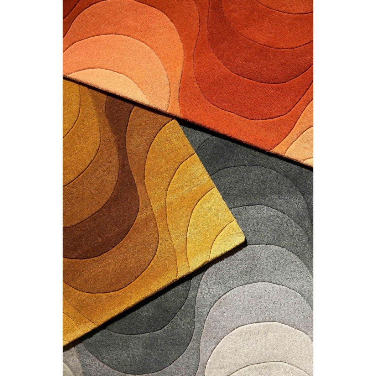 Seven coloured rectangular rugs with the organic pattern. Available in grey, orange and yellow.