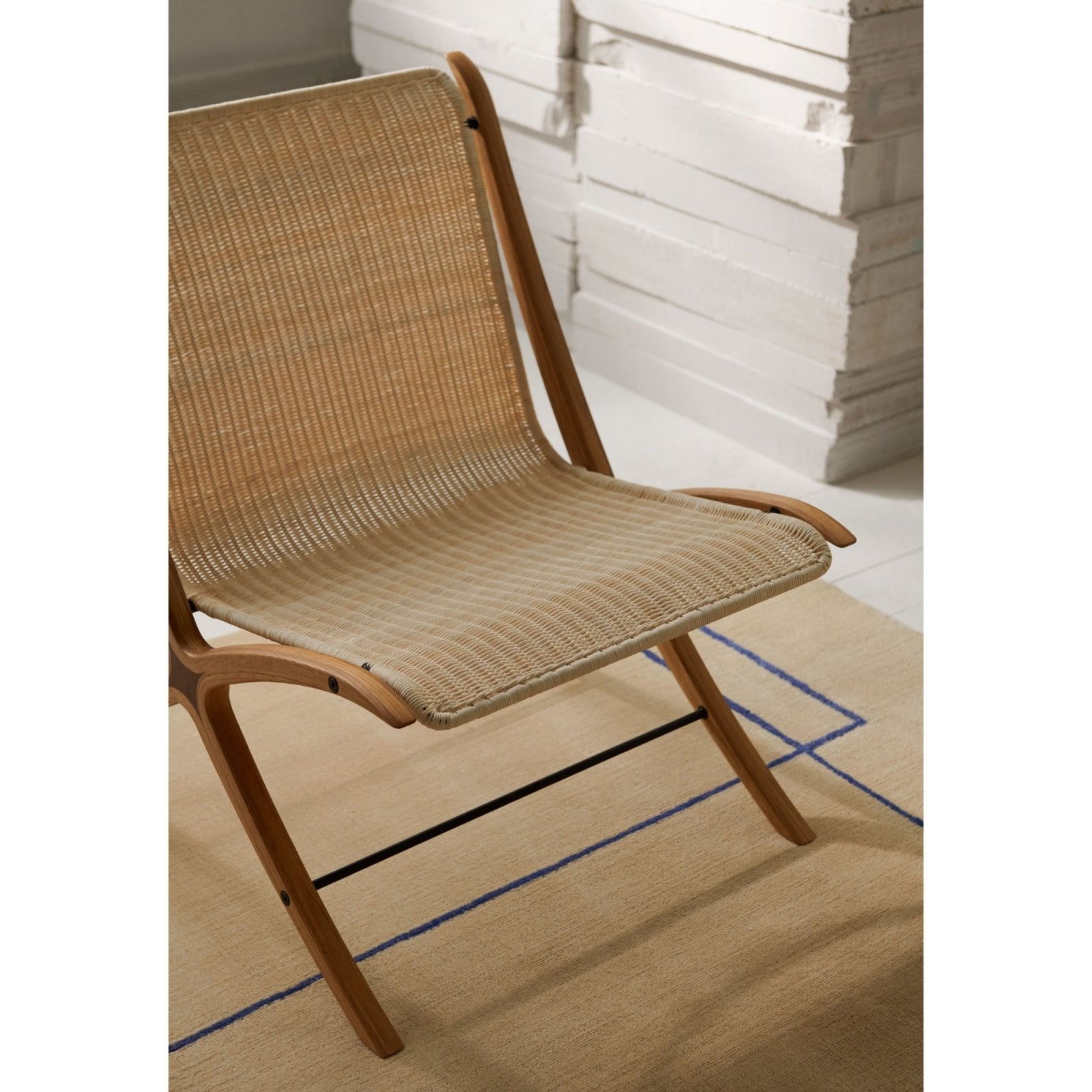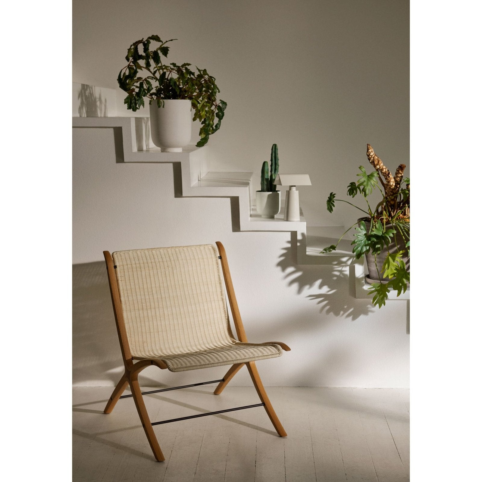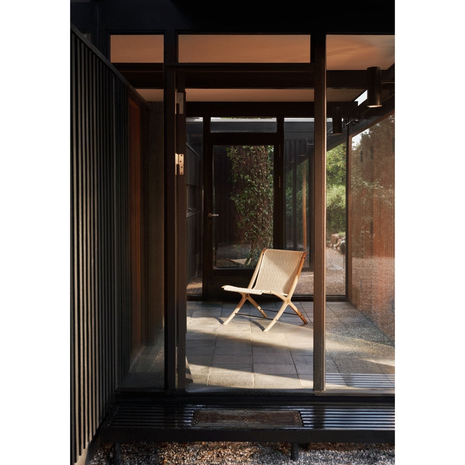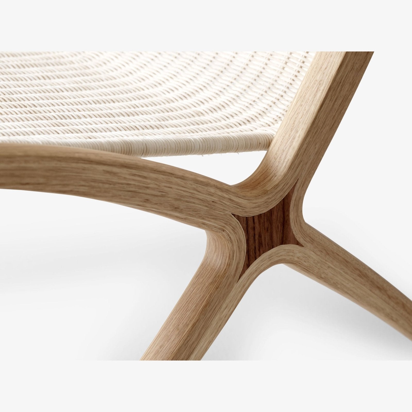 After experimenting for years with the concept of a laminated wooden frame inspired by old wooden tennis rackets, Danish design duo Hvidt & Mølgaard released X in 1959, a lounge chair with a distinctive sloping silhouette and understated aesthetic.